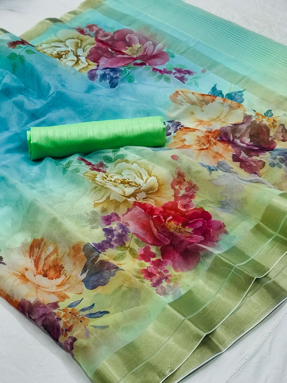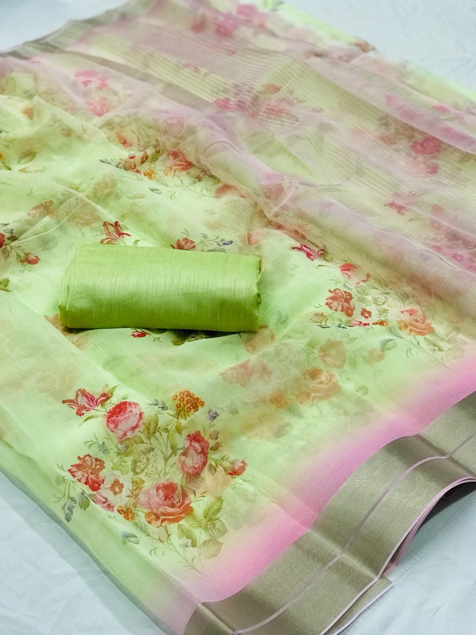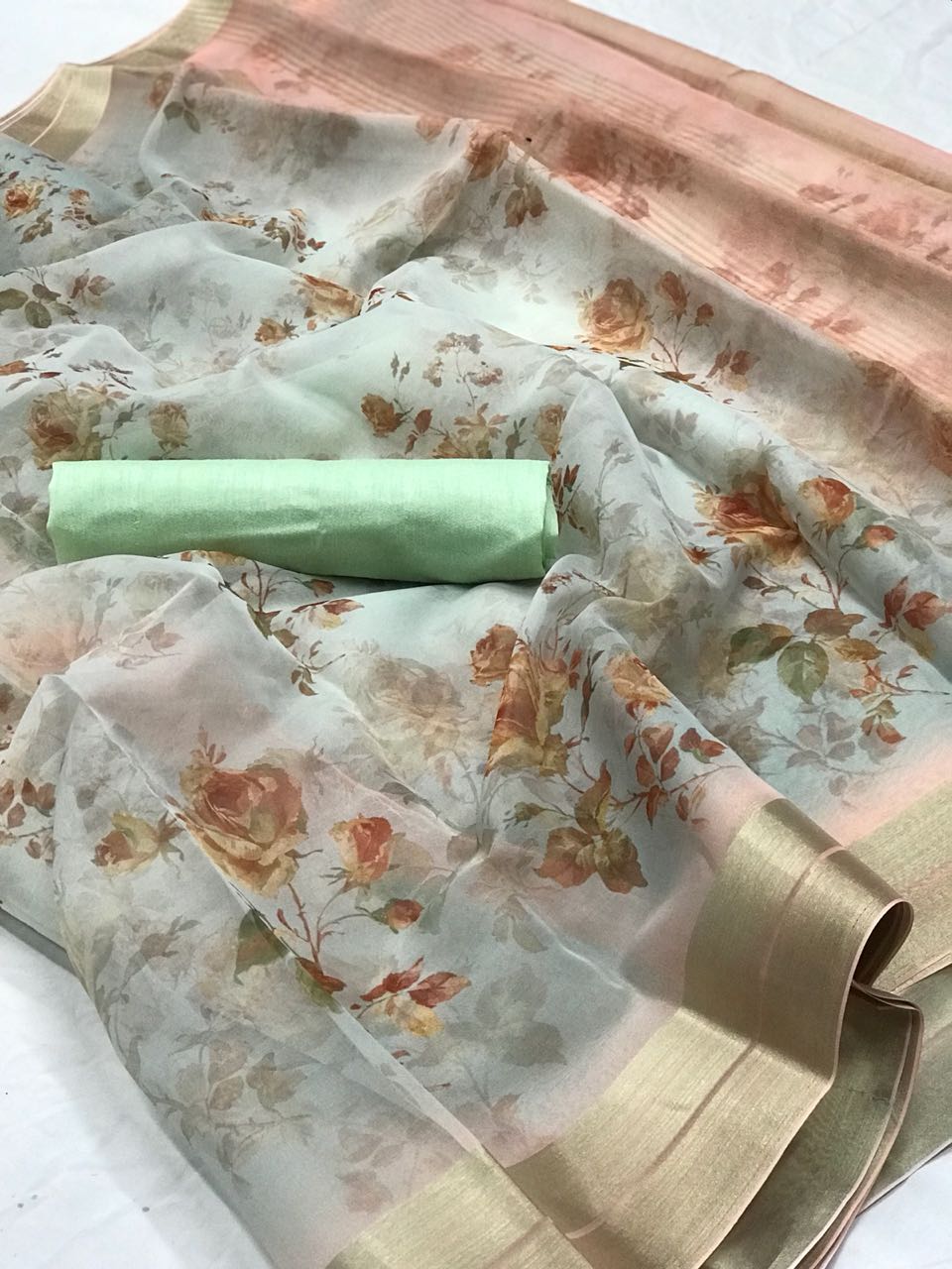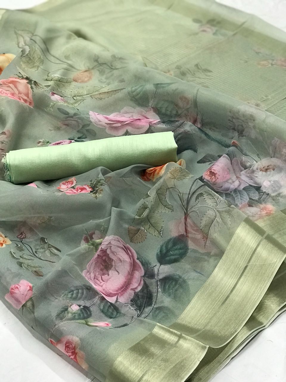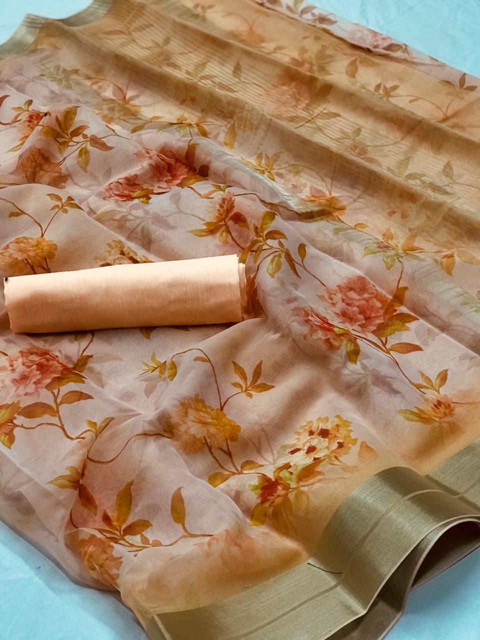 CATLOGUE - *ORGANZA PRINT* Fabric Details -. *ORGANZA PRINT* Set Rate:1005+5% Single rate 1055+5% Book fast Full set ready Single also Ready stock Book on whatsapp +919898838984 |