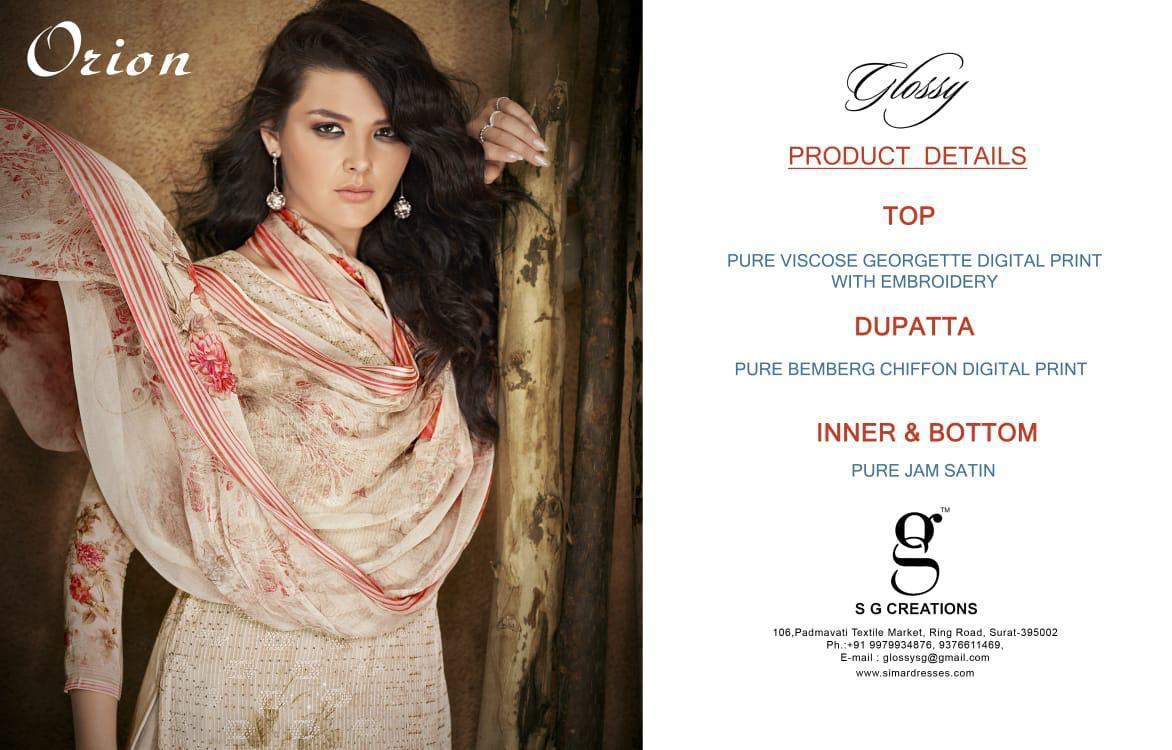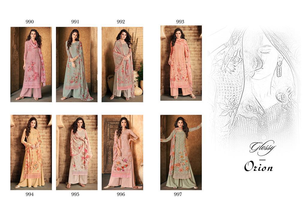 Buy Online Orion By Glossy Series 990 To 997 Designer Party Wear Suits Wholesale Supplier India 8 Pcs of Full Catalogue at Wholesale Price. Looking for Orion By Glossy Series 990 To 997 Designer Party Wear Suits Wholesale Supplier India Full Catalouge at Best Price? Buy Now Orion By Glossy Series 990 To 997 Designer Party Wear Suits Wholesale Supplier India at Wholesale Rate of Rs 15960 with Total 8 Pcs from authroized dealer and supplier of GLOSSY Brand. Cost of Each piece is just only Rs 1995 which is very low and affordable price to resale the product in your retail store ,This is Surat based Wholesale Supplier & Dealer of GLOSSY Brand. Click on Brand name to Know more about GLOSSY Brand's products.Call or Whatsapp on 9898838984 for booking or enquiry