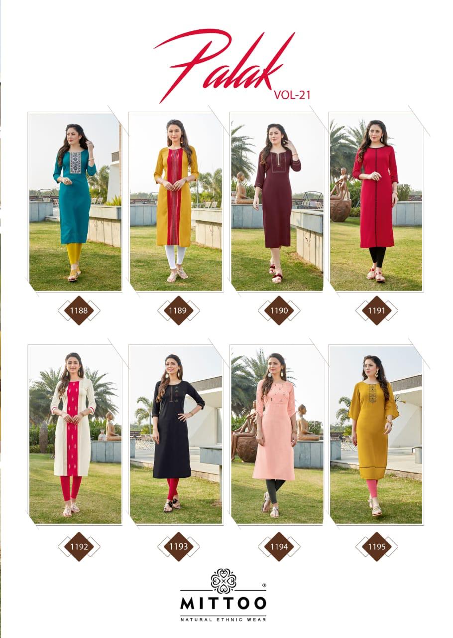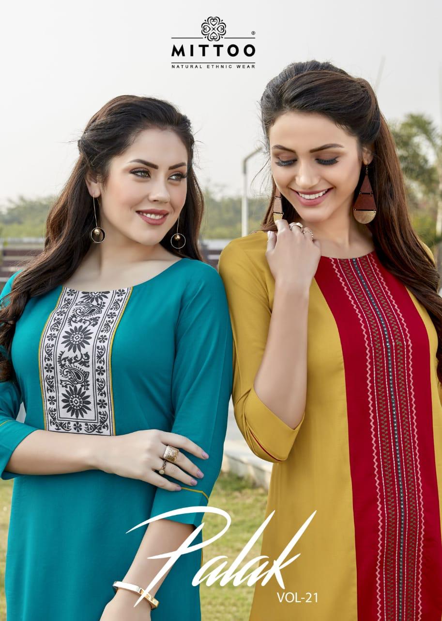 Palak Vol 21 By Mittoo Reyon Kurtis Wholesale Supplier Gujarat