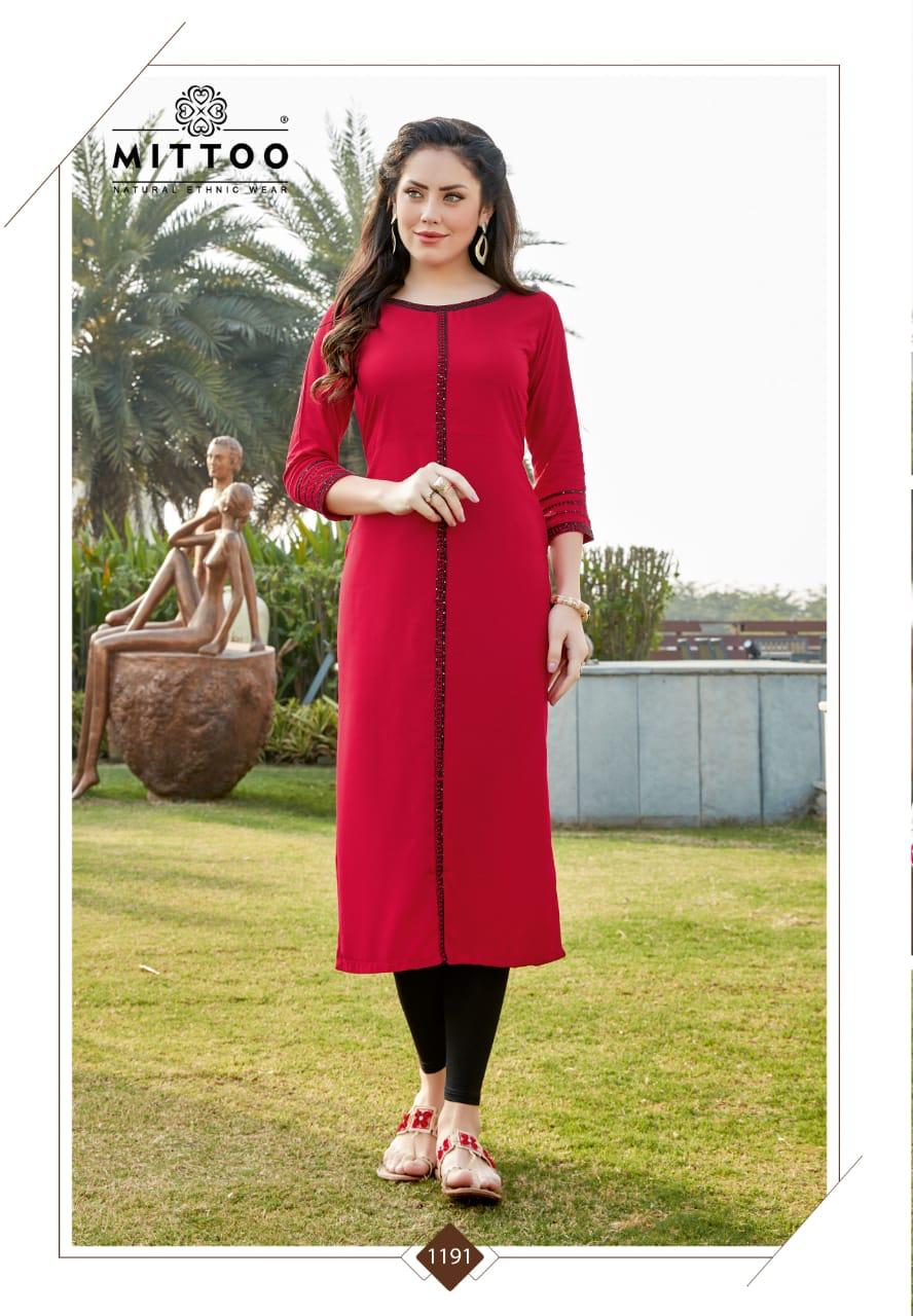 Buy Online Palak Vol 21 By Mittoo Reyon Kurtis Wholesale Supplier Gujarat 8 Pcs of Full Catalogue at Wholesale Price. Looking for Palak Vol 21 By Mittoo Reyon Kurtis Wholesale Supplier Gujarat Full Catalouge at Best Price? Buy Now Palak Vol 21 By Mittoo Reyon Kurtis Wholesale Supplier Gujarat at Wholesale Rate of Rs 3560 with Total 8 Pcs from authroized dealer and supplier of MITTOO Brand. Cost of Each piece is just only Rs 445 which is very low and affordable price to resale the product in your retail store ,This is Surat based Wholesale Supplier & Dealer of MITTOO Brand. Click on Brand name to Know more about MITTOO Brand's products.Call or Whatsapp on 9898838984 for booking or enquiry