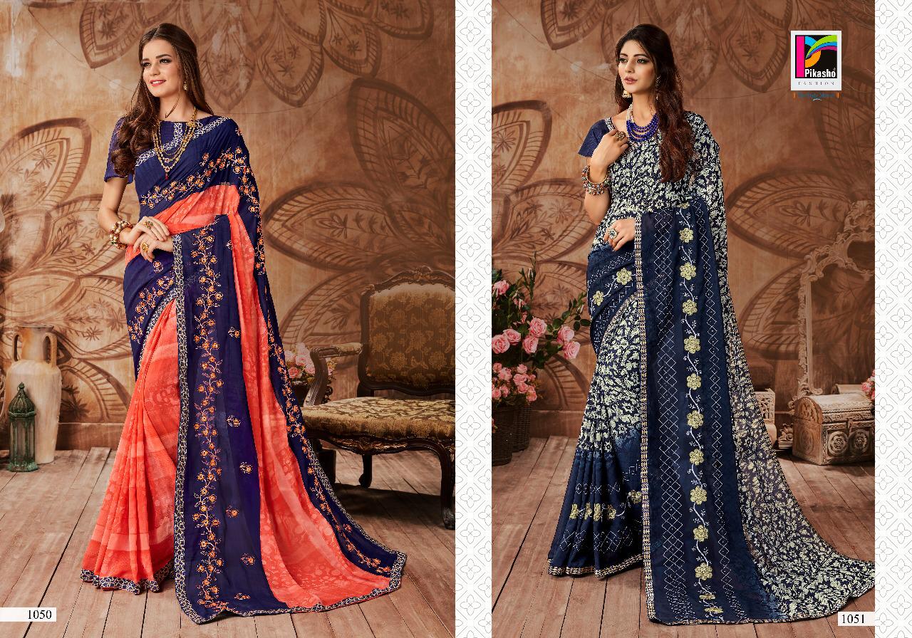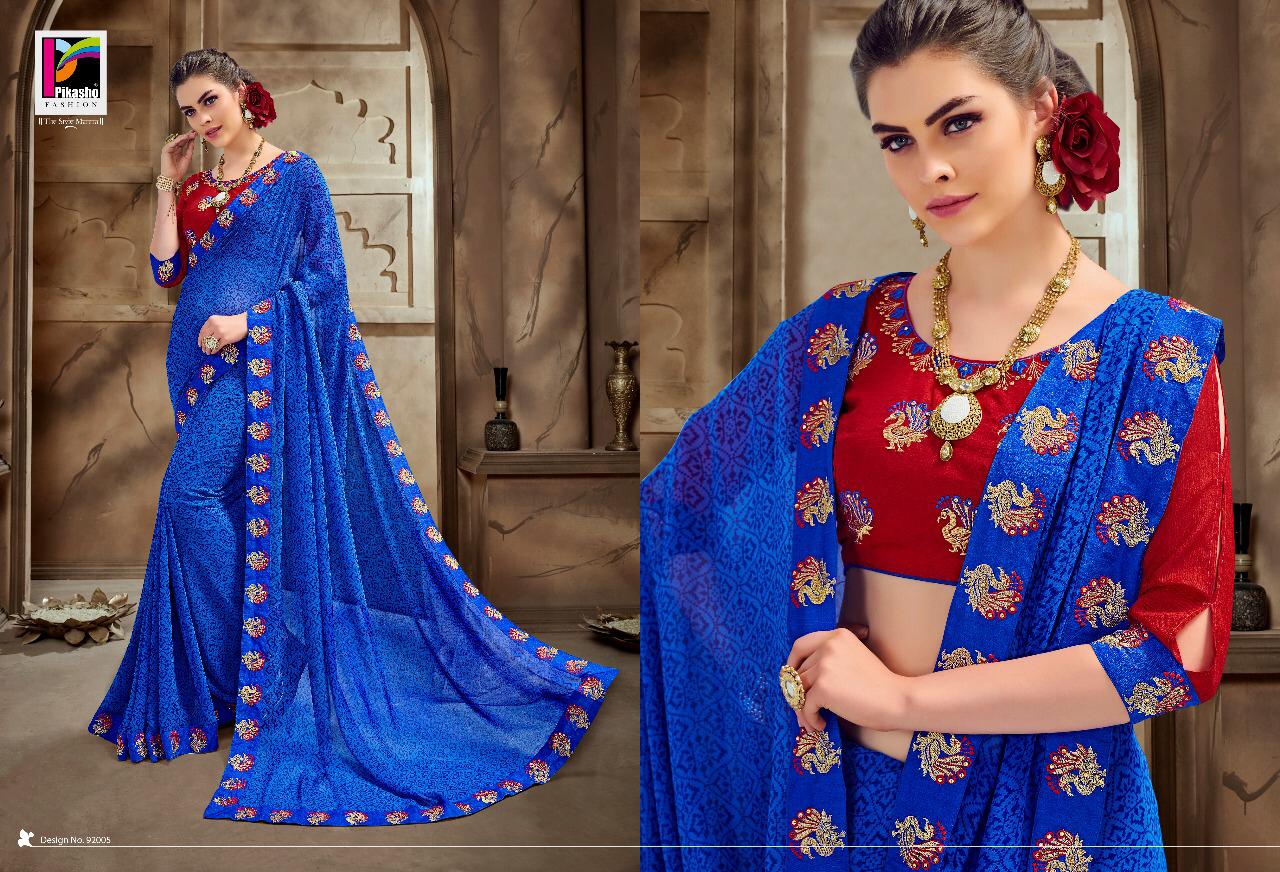 Buy Online Palak Vol 4 By Pikaso Georgette Designer Sarees Wholesale Supplier Surat 14 Pcs of Full Catalogue at Wholesale Price. Looking for Palak Vol 4 By Pikaso Georgette Designer Sarees Wholesale Supplier Surat Full Catalouge at Best Price? Buy Now Palak Vol 4 By Pikaso Georgette Designer Sarees Wholesale Supplier Surat at Wholesale Rate of Rs 5670 with Total 14 Pcs from authroized dealer and supplier of Pikasho Fashion Brand. Cost of Each piece is just only Rs 405 which is very low and affordable price to resale the product in your retail store ,This is Surat based Wholesale Supplier & Dealer of Pikasho Fashion Brand. Click on Brand name to Know more about Pikasho Fashion Brand's products.Call or Whatsapp on 9898838984 for booking or enquiry