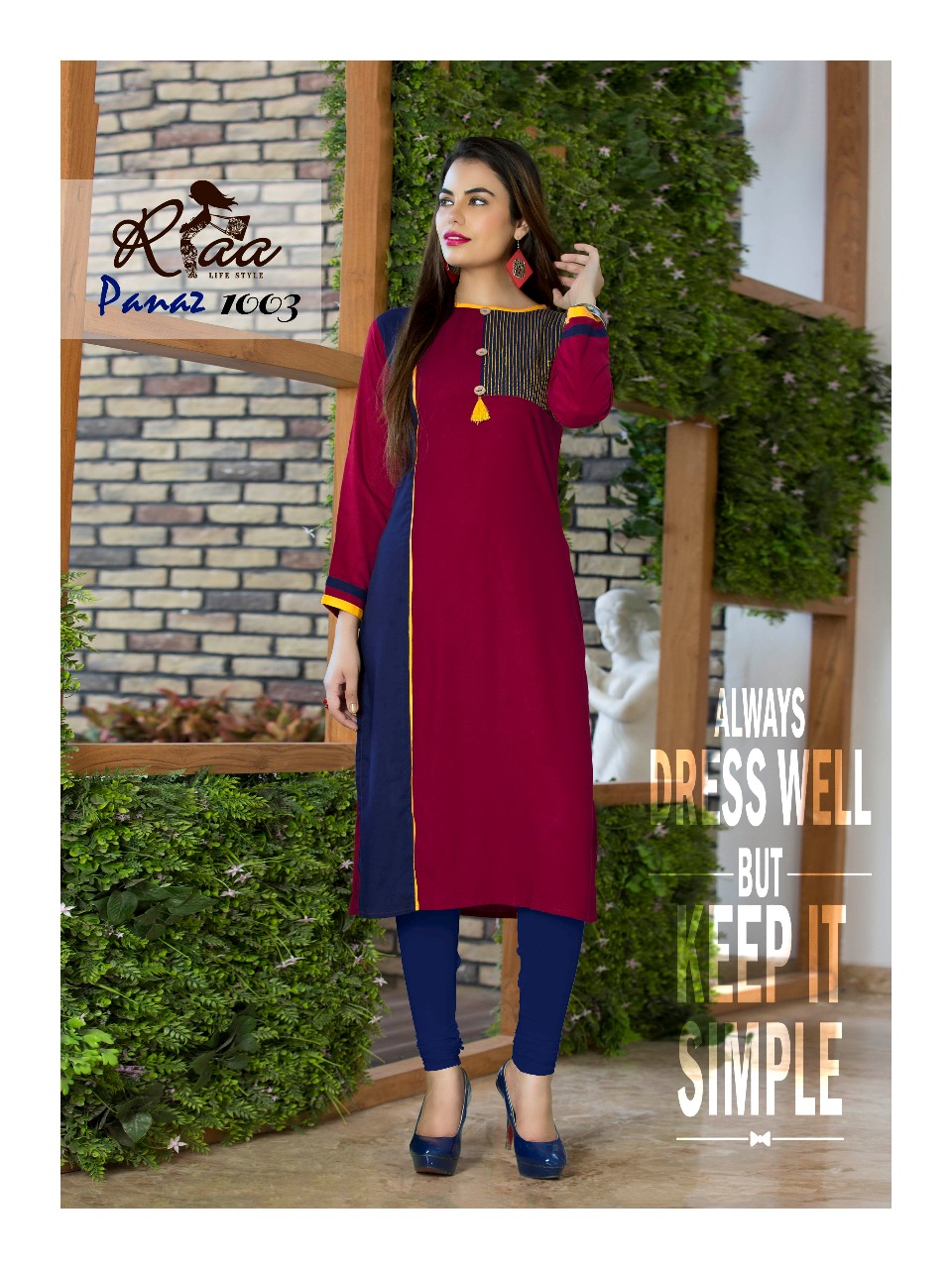 Panaj By Riaa Series 1001 To 1008 Reyon Kurtis Wholesale Supplier And Dealer India