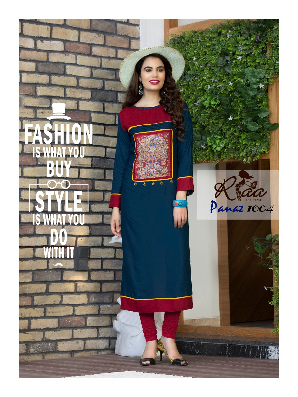 Buy Online Panaj By Riaa Series 1001 To 1008 Reyon Kurtis Wholesale Supplier And Dealer India 8 Pcs of Full Catalogue at Wholesale Price. Looking for Panaj By Riaa Series 1001 To 1008 Reyon Kurtis Wholesale Supplier And Dealer India Full Catalouge at Best Price? Buy Now Panaj By Riaa Series 1001 To 1008 Reyon Kurtis Wholesale Supplier And Dealer India at Wholesale Rate of Rs 3400 with Total 8 Pcs from authroized dealer and supplier of Brand. Cost of Each piece is just only Rs 425 which is very low and affordable price to resale the product in your retail store ,This is Surat based Wholesale Supplier & Dealer of Brand. Click on Brand name to Know more about Brand's products.Call or Whatsapp on 9898838984 for booking or enquiry