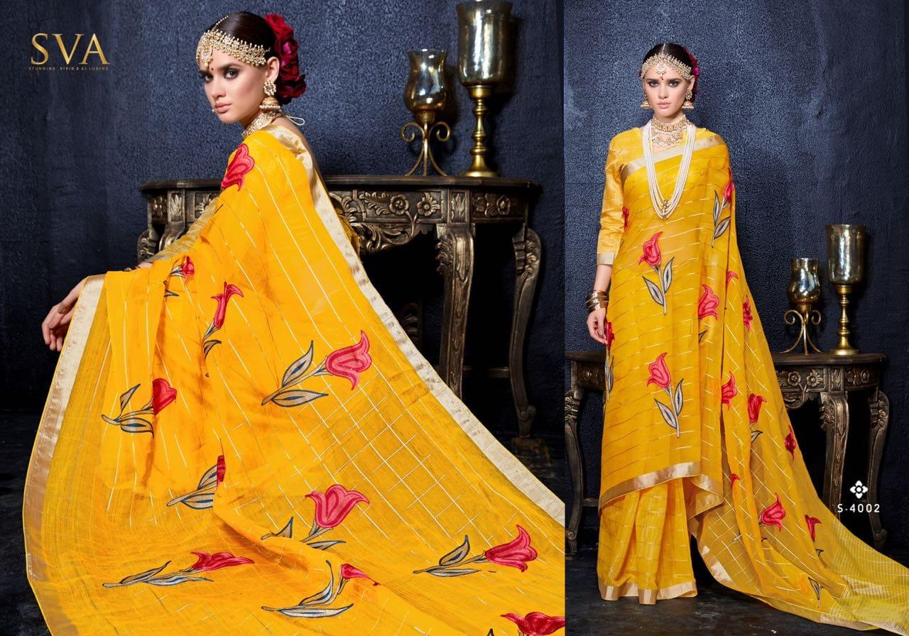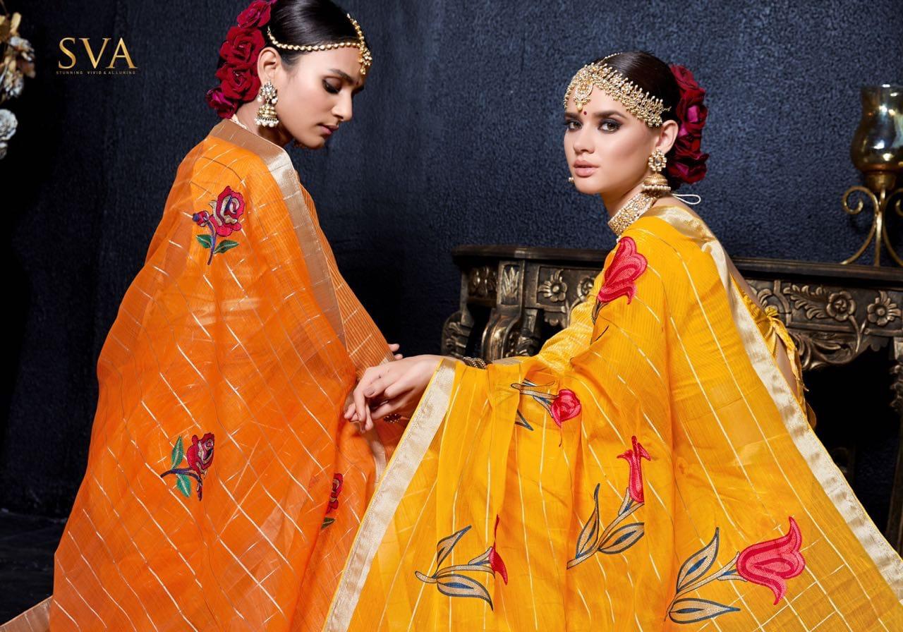 PANALAL - 3 catalogue BY SVA Rate -799 per pcs . Total 6 Pcs in set. Rate applicable From 15-04-19. No Previous rate deduction applicable . * set to set * PALLU VIVING ZARI BODY CHEX ZARI ORGENZA SKIRT LINEN WEAVING SAREE WITH EMBROIDERY WORK. Delivery from today |