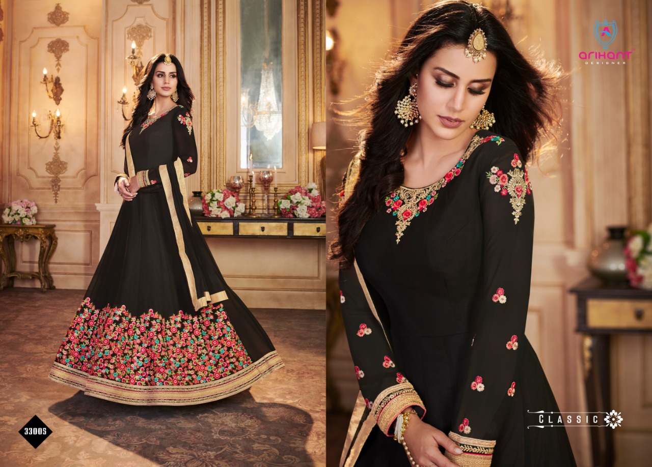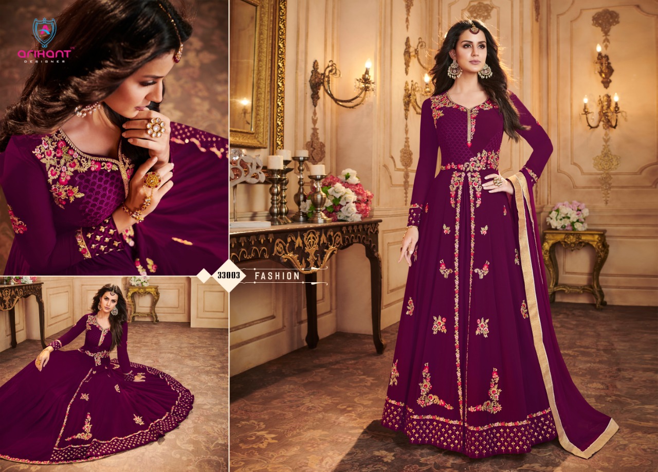 Buy Online Paniksha By Arihant Designer 33001 Series Designer Gown Suit Collection Wholesaler And Supplier Surat 5 Pcs of Full Catalogue at Wholesale Price. Looking for Paniksha By Arihant Designer 33001 Series Designer Gown Suit Collection Wholesaler And Supplier Surat Full Catalouge at Best Price? Buy Now Paniksha By Arihant Designer 33001 Series Designer Gown Suit Collection Wholesaler And Supplier Surat at Wholesale Rate of Rs 8975 with Total 5 Pcs from authroized dealer and supplier of ARIHANT Brand. Cost of Each piece is just only Rs 1795 which is very low and affordable price to resale the product in your retail store ,This is Surat based Wholesale Supplier & Dealer of ARIHANT Brand. Click on Brand name to Know more about ARIHANT Brand's products.Call or Whatsapp on 9898838984 for booking or enquiry