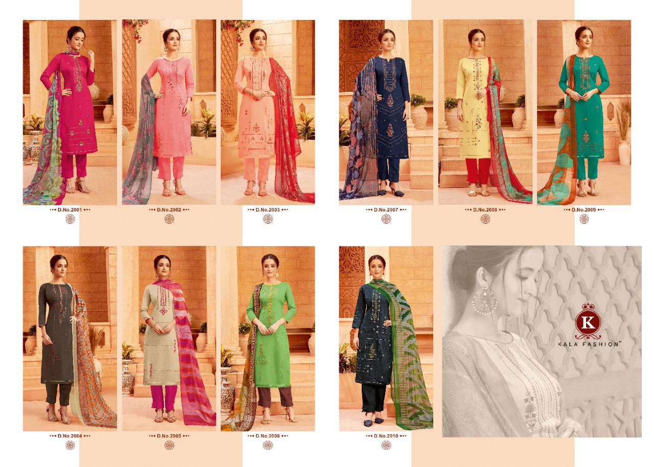 Buy Online Panjab Express By Kala Fashion Dress Materials Wholesale Supplier And Dealer Gujarat 10 Pcs of Full Catalogue at Wholesale Price. Looking for Panjab Express By Kala Fashion Dress Materials Wholesale Supplier And Dealer Gujarat Full Catalouge at Best Price? Buy Now Panjab Express By Kala Fashion Dress Materials Wholesale Supplier And Dealer Gujarat at Wholesale Rate of Rs 5990 with Total 10 Pcs from authroized dealer and supplier of Brand. Cost of Each piece is just only Rs 599 which is very low and affordable price to resale the product in your retail store ,This is Surat based Wholesale Supplier & Dealer of Brand. Click on Brand name to Know more about Brand's products.Call or Whatsapp on 9898838984 for booking or enquiry