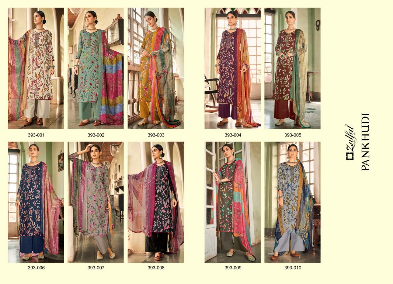 Buy Online Pankhudi By Zulfat Designer Suits Wholesale Suppliers And Dealer From India 10 Pcs of Full Catalogue at Wholesale Price. Looking for Pankhudi By Zulfat Designer Suits Wholesale Suppliers And Dealer From India Full Catalouge at Best Price? Buy Now Pankhudi By Zulfat Designer Suits Wholesale Suppliers And Dealer From India at Wholesale Rate of Rs 4950 with Total 10 Pcs from authroized dealer and supplier of Brand. Cost of Each piece is just only Rs 495 which is very low and affordable price to resale the product in your retail store ,This is Surat based Wholesale Supplier & Dealer of Brand. Click on Brand name to Know more about Brand's products.Call or Whatsapp on 9898838984 for booking or enquiry