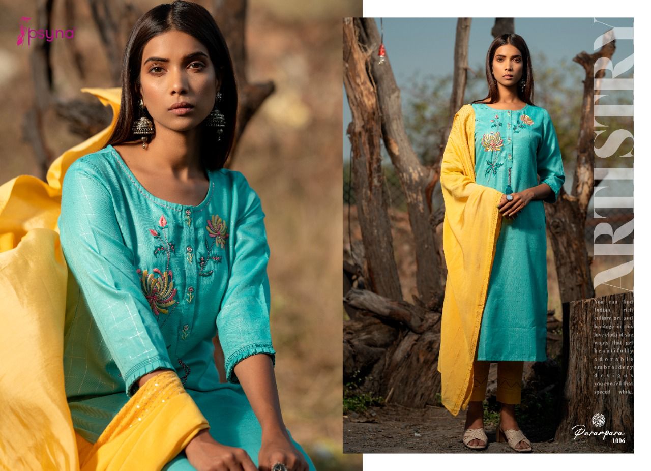 Buy Online Parampara By Psyna Dealer And Exporter Surat Gujarat 6 Pcs of Full Catalogue at Wholesale Price. Looking for Parampara By Psyna Dealer And Exporter Surat Gujarat Full Catalouge at Best Price? Buy Now Parampara By Psyna Dealer And Exporter Surat Gujarat at Wholesale Rate of Rs 7194 with Total 6 Pcs from authroized dealer and supplier of PSYNA Brand. Cost of Each piece is just only Rs 1199 which is very low and affordable price to resale the product in your retail store ,This is Surat based Wholesale Supplier & Dealer of PSYNA Brand. Click on Brand name to Know more about PSYNA Brand's products.Call or Whatsapp on 9898838984 for booking or enquiry