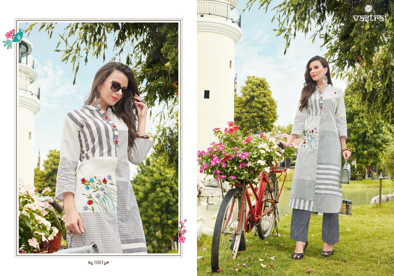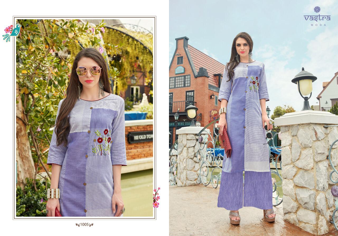Paris Vol 1 By Vastra Moda 1001 Series Fancy Reyon Cotton Kurti Catlog Wholesale Dealer Surat