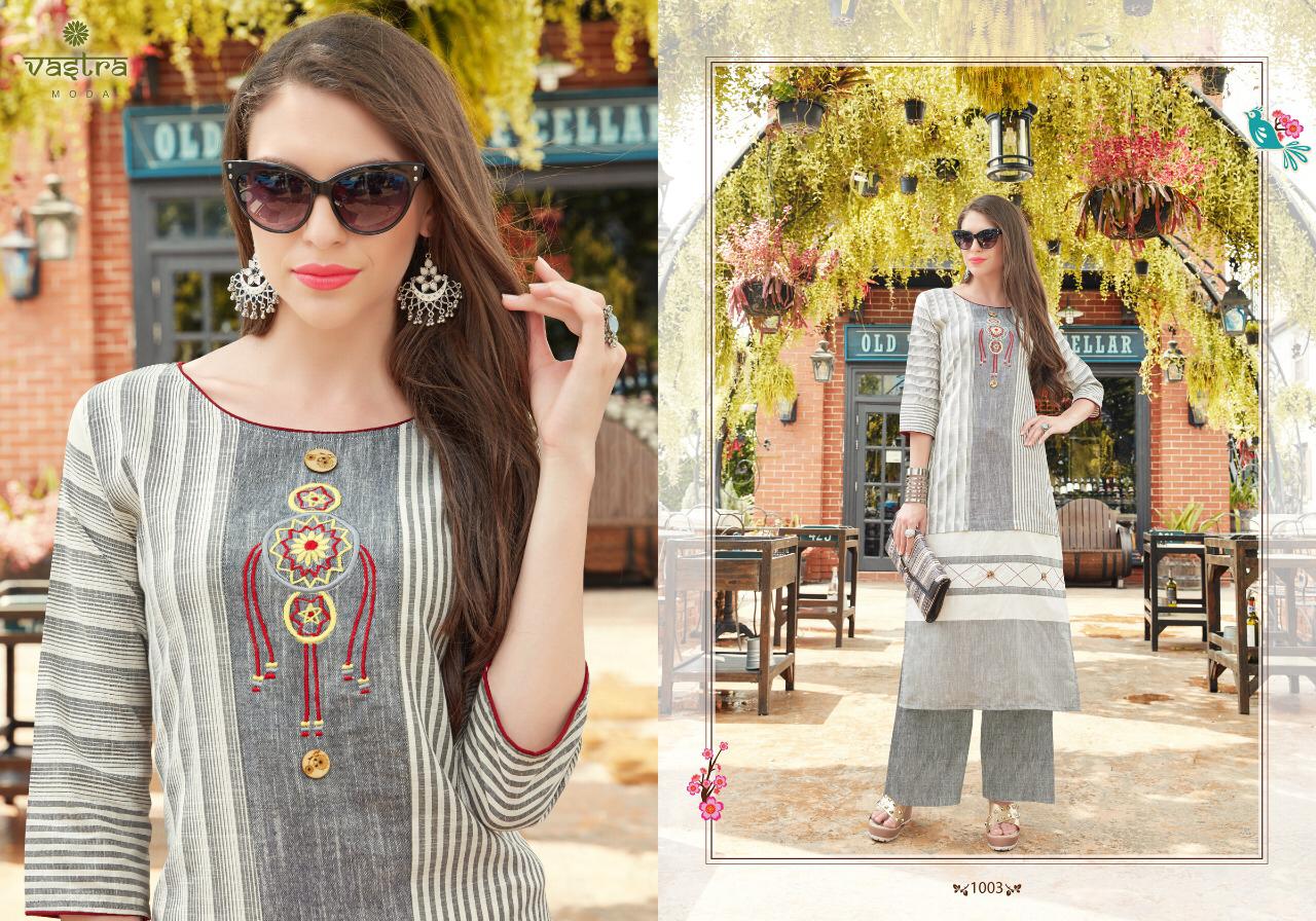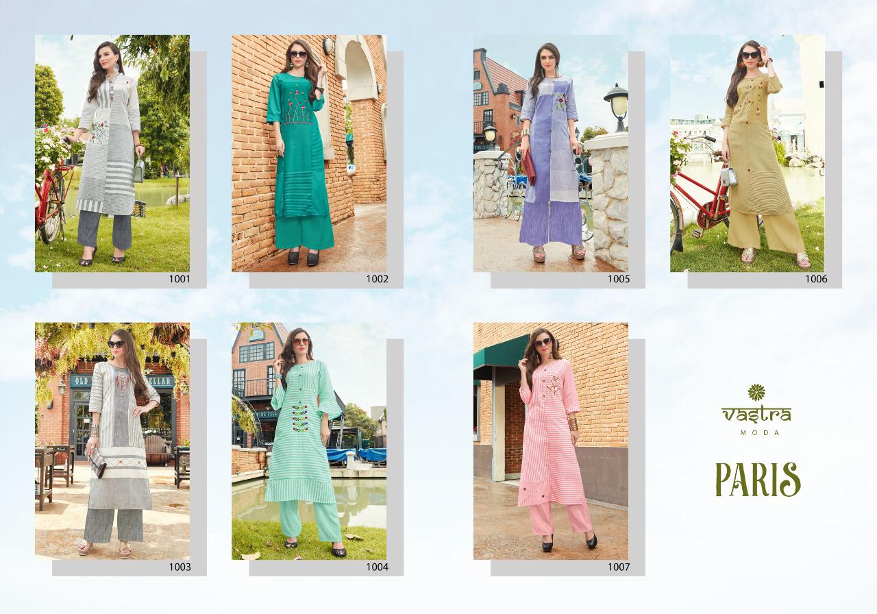 Buy Online Paris Vol 1 By Vastra Moda 1001 Series Fancy Reyon Cotton Kurti Catlog Wholesale Dealer Surat 7 Pcs of Full Catalogue at Wholesale Price. Looking for Paris Vol 1 By Vastra Moda 1001 Series Fancy Reyon Cotton Kurti Catlog Wholesale Dealer Surat Full Catalouge at Best Price? Buy Now Paris Vol 1 By Vastra Moda 1001 Series Fancy Reyon Cotton Kurti Catlog Wholesale Dealer Surat at Wholesale Rate of Rs 3885 with Total 7 Pcs from authroized dealer and supplier of Brand. Cost of Each piece is just only Rs 555 which is very low and affordable price to resale the product in your retail store ,This is Surat based Wholesale Supplier & Dealer of Brand. Click on Brand name to Know more about Brand's products.Call or Whatsapp on 9898838984 for booking or enquiry