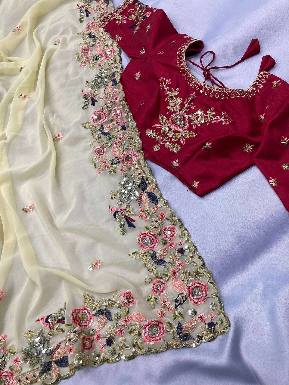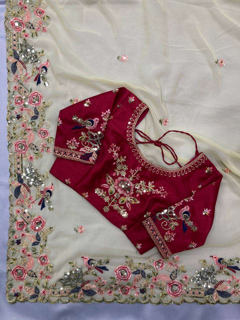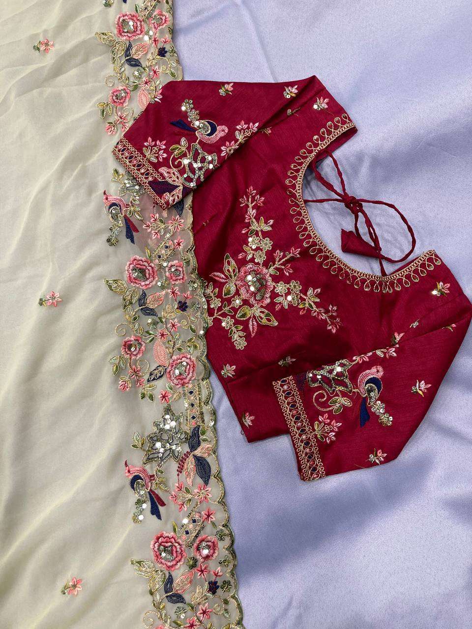 📝*Description*📝 Looking some one for this same colour beautiful Saree for wedding on premium Soft Heavy Georgette fabric with C-pallu All Over Embroidery Work Butti & Cutwork Border and Hevay Embroidery Work blouse.