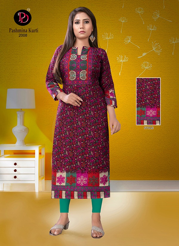 Exclusive Designer Winter Collection Kurtis *"Pashmeena vol 2"* ?? Designer Pashmeena Printed Long Stitched kurti with stole *TOP:Pure Pashmina Print with stole* *Size :- L, Xl, XXl* *Design :- 9 PC* *?Rate: 310/- + GST* Length :- 45+ ???????????????? Hurry Limited Stock Regards Poorvi Designer Surat *set to set* |