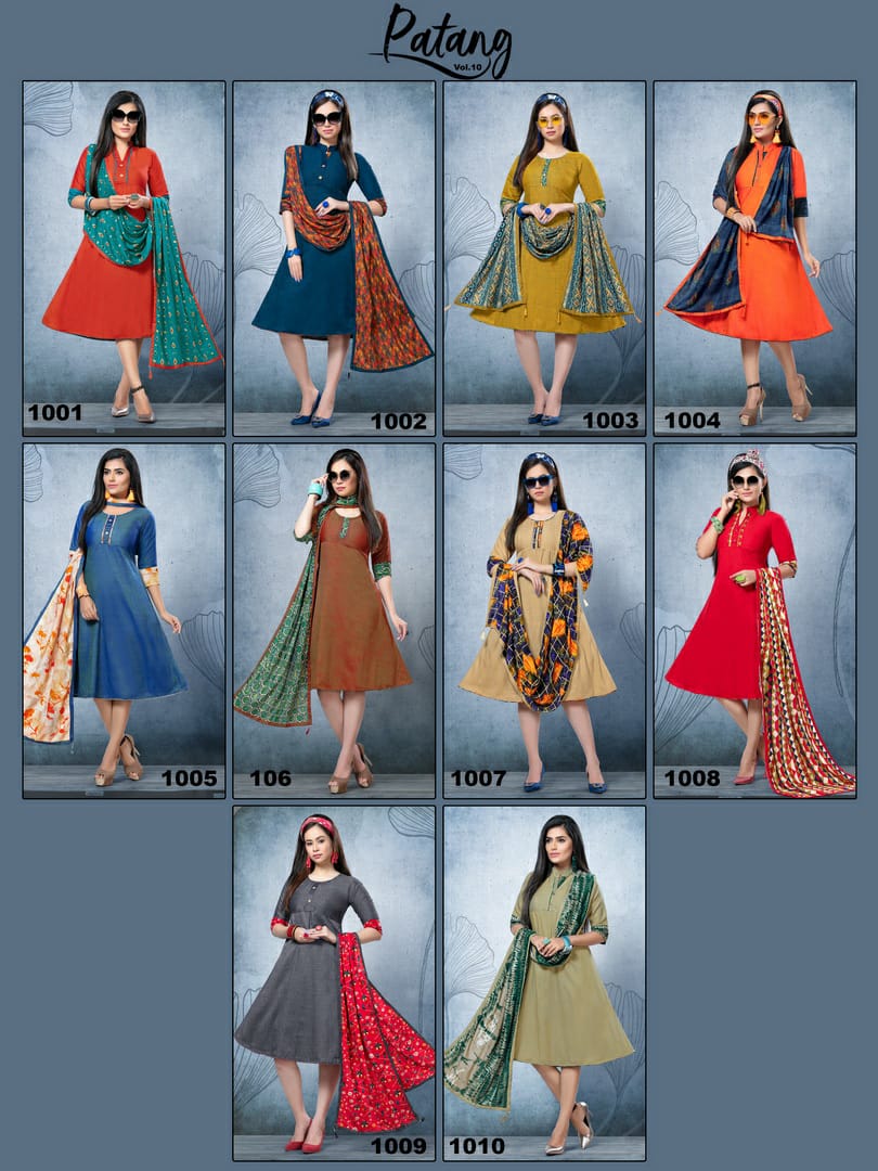 Buy Online Patang 10 By Kinti Reyon Kurtis Wholesale Supplier And Dealer India 10 Pcs of Full Catalogue at Wholesale Price. Looking for Patang 10 By Kinti Reyon Kurtis Wholesale Supplier And Dealer India Full Catalouge at Best Price? Buy Now Patang 10 By Kinti Reyon Kurtis Wholesale Supplier And Dealer India at Wholesale Rate of Rs 4050 with Total 10 Pcs from authroized dealer and supplier of BRAND'S Brand. Cost of Each piece is just only Rs 405 which is very low and affordable price to resale the product in your retail store ,This is Surat based Wholesale Supplier & Dealer of BRAND'S Brand. Click on Brand name to Know more about BRAND'S Brand's products.Call or Whatsapp on 9898838984 for booking or enquiry