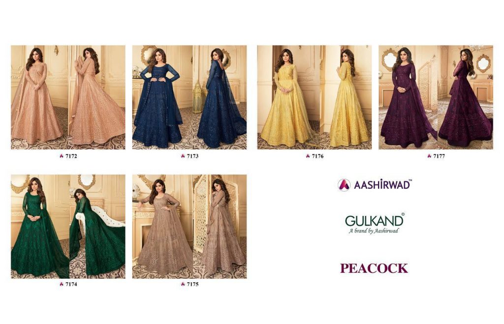 Buy Online Peacock By Aashirwad Series 7172 Designer Party Wear Suits Wholesale Supplier Gujarat 6 Pcs of Full Catalogue at Wholesale Price. Looking for Peacock By Aashirwad Series 7172 Designer Party Wear Suits Wholesale Supplier Gujarat Full Catalouge at Best Price? Buy Now Peacock By Aashirwad Series 7172 Designer Party Wear Suits Wholesale Supplier Gujarat at Wholesale Rate of Rs 17370 with Total 6 Pcs from authroized dealer and supplier of AASHIRWAD Brand. Cost of Each piece is just only Rs 2895 which is very low and affordable price to resale the product in your retail store ,This is Surat based Wholesale Supplier & Dealer of AASHIRWAD Brand. Click on Brand name to Know more about AASHIRWAD Brand's products.Call or Whatsapp on 9898838984 for booking or enquiry