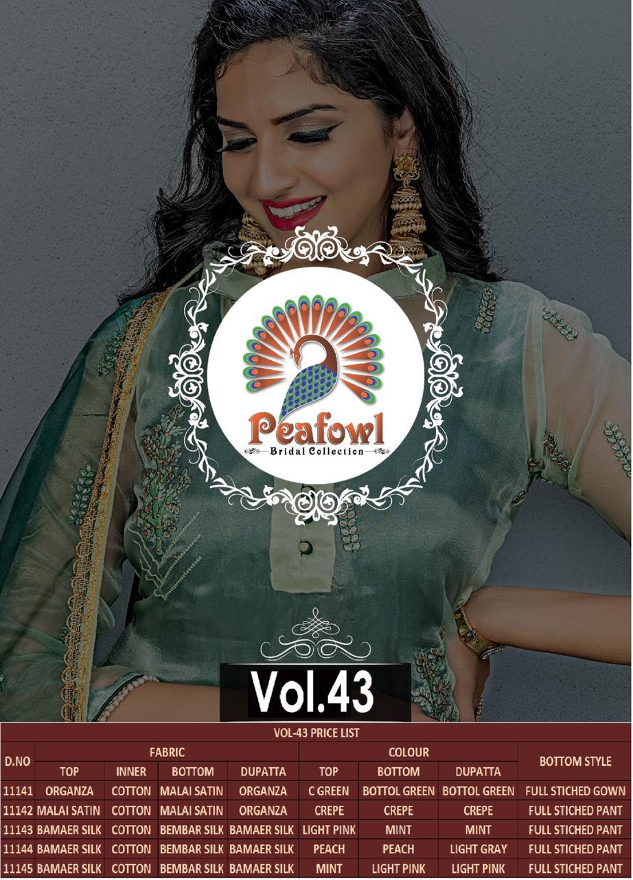 Peafowl Vol 43 Series 11141 To 11145 Designer Party Wear Suits Set And Single Wholesale Supplier Gujarat
