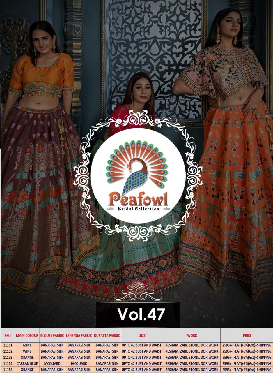 Peafowl Vol 47 Series 11161 To 11165 Designer Party Wear Lehngas Set And Single Wholesale Supplier And Dealer Gujarat