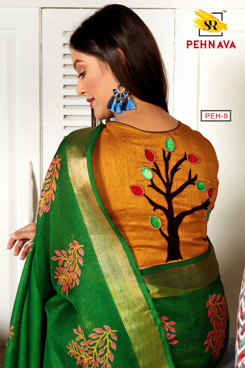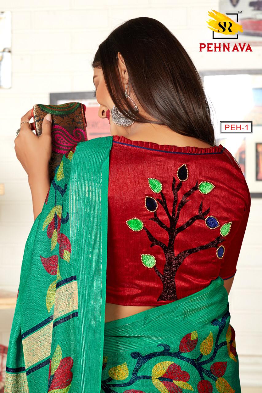 New catalogue launching *Brand S.R* *catalog name PEHNAVA* Digital print and designer clothing HAND WORK BLOUSE LINEN WITH BORDER Single available ready stock *Rate 860/- including gst rate* |
