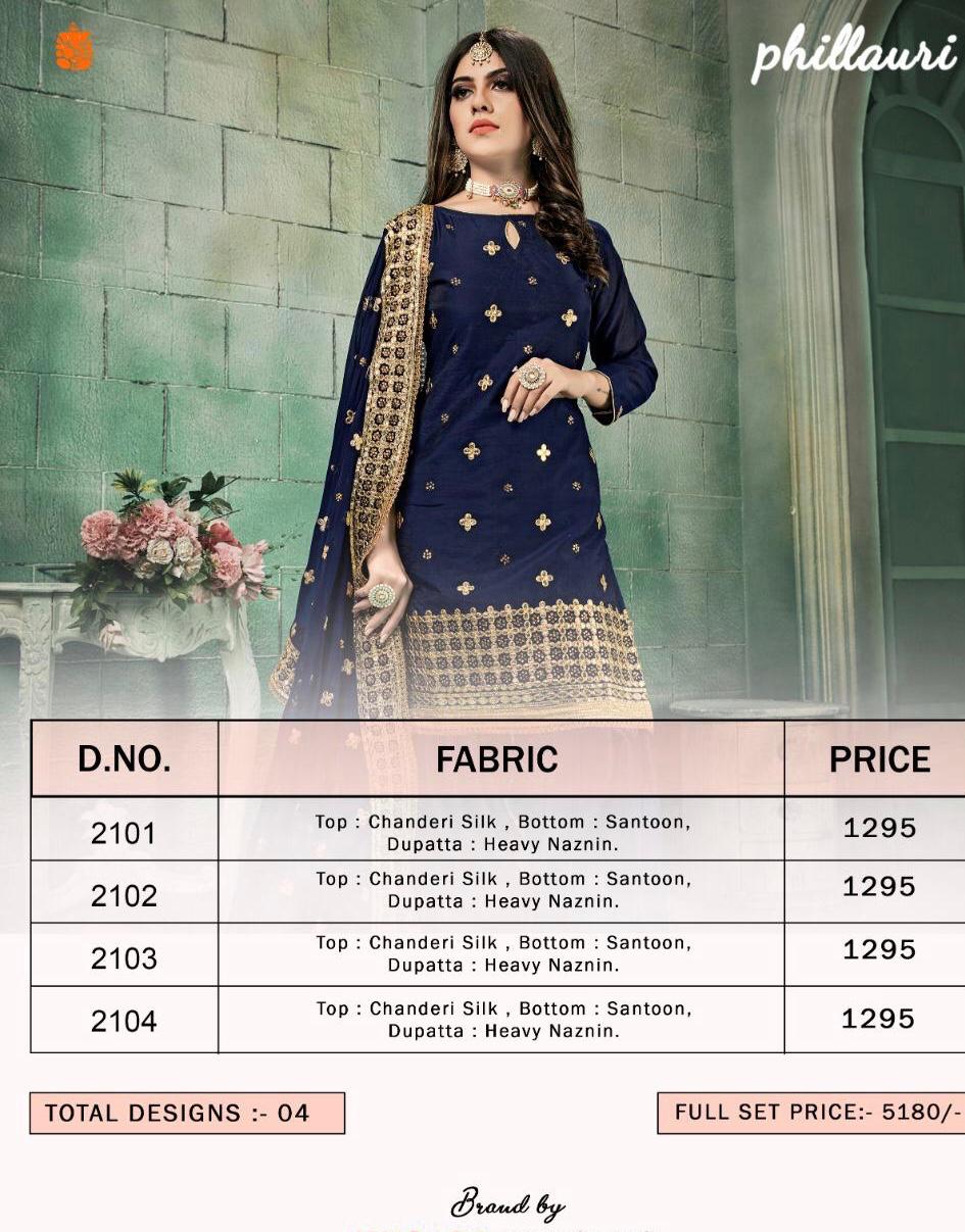 Buy Online Phillauri Vol 21 Series 2101 Designer Party Wear Suits Wholesale Supplier Gujarat 4 Pcs of Full Catalogue at Wholesale Price. Looking for Phillauri Vol 21 Series 2101 Designer Party Wear Suits Wholesale Supplier Gujarat Full Catalouge at Best Price? Buy Now Phillauri Vol 21 Series 2101 Designer Party Wear Suits Wholesale Supplier Gujarat at Wholesale Rate of Rs 5180 with Total 4 Pcs from authroized dealer and supplier of Brand. Cost of Each piece is just only Rs 1295 which is very low and affordable price to resale the product in your retail store ,This is Surat based Wholesale Supplier & Dealer of Brand. Click on Brand name to Know more about Brand's products.Call or Whatsapp on 9898838984 for booking or enquiry