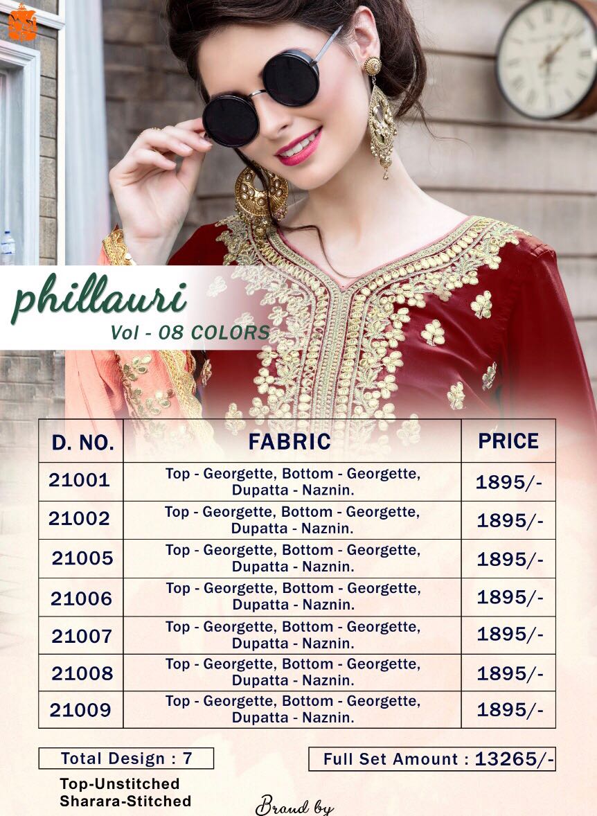 Buy Online Phillauri Vol 8 Gota Patti Georgette Desinger Party Wear Dresses Wholesale Supplier And Dealer Gujarat 7 Pcs of Full Catalogue at Wholesale Price. Looking for Phillauri Vol 8 Gota Patti Georgette Desinger Party Wear Dresses Wholesale Supplier And Dealer Gujarat Full Catalouge at Best Price? Buy Now Phillauri Vol 8 Gota Patti Georgette Desinger Party Wear Dresses Wholesale Supplier And Dealer Gujarat at Wholesale Rate of Rs 13265 with Total 7 Pcs from authroized dealer and supplier of Brand. Cost of Each piece is just only Rs 1895 which is very low and affordable price to resale the product in your retail store ,This is Surat based Wholesale Supplier & Dealer of Brand. Click on Brand name to Know more about Brand's products.Call or Whatsapp on 9898838984 for booking or enquiry