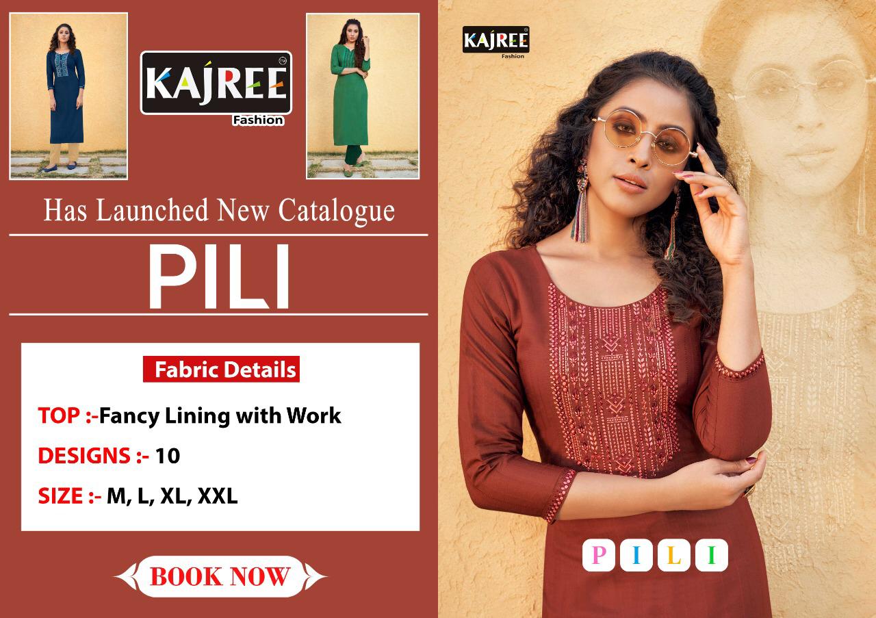 Buy Online Pili By Kalaroop By Kajree Kurtis Wholesale Supplier And Dealer Surat 10 Pcs of Full Catalogue at Wholesale Price. Looking for Pili By Kalaroop By Kajree Kurtis Wholesale Supplier And Dealer Surat Full Catalouge at Best Price? Buy Now Pili By Kalaroop By Kajree Kurtis Wholesale Supplier And Dealer Surat at Wholesale Rate of Rs 3450 with Total 10 Pcs from authroized dealer and supplier of BRAND'S Brand. Cost of Each piece is just only Rs 345 which is very low and affordable price to resale the product in your retail store ,This is Surat based Wholesale Supplier & Dealer of BRAND'S Brand. Click on Brand name to Know more about BRAND'S Brand's products.Call or Whatsapp on 9898838984 for booking or enquiry