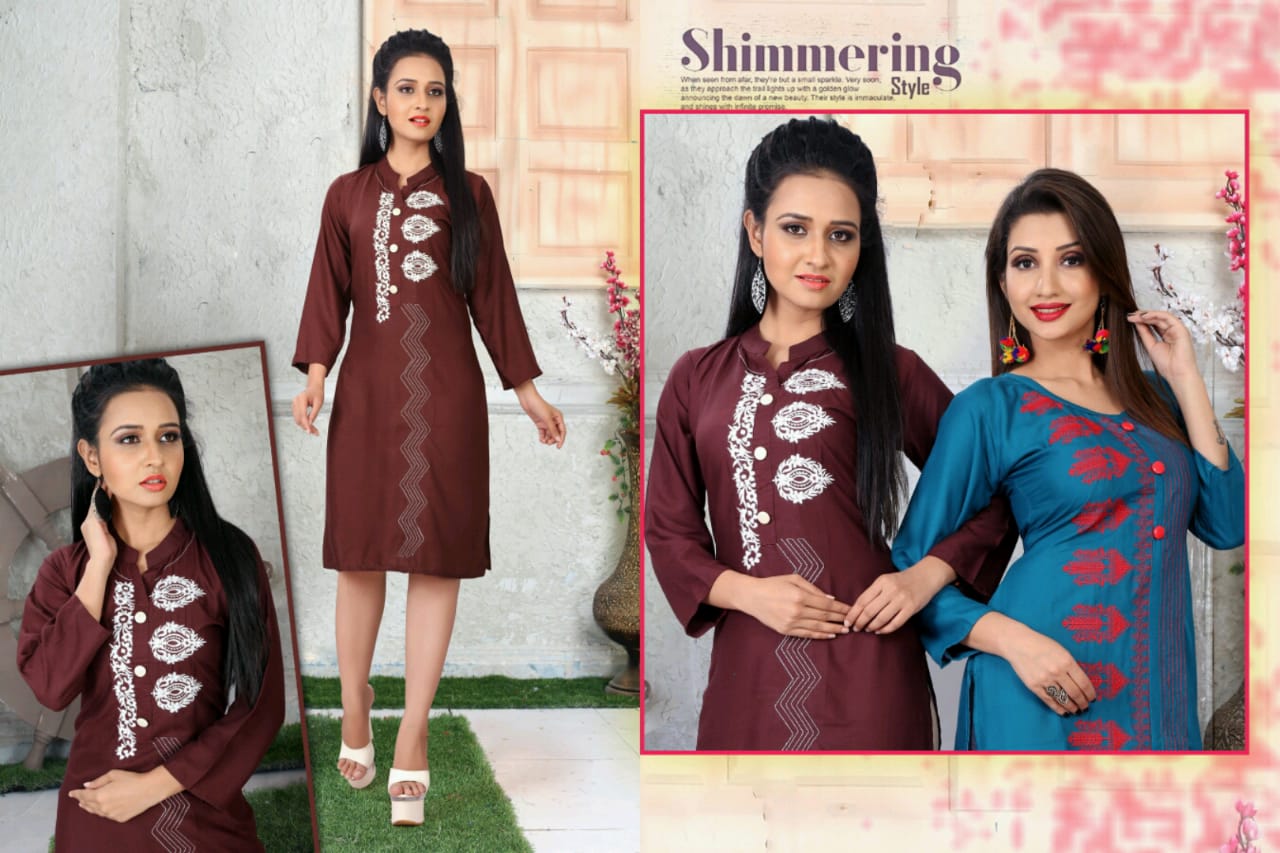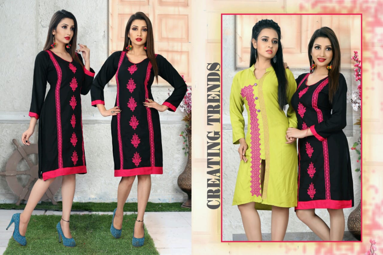 Buy Online Pinkyy Nri Stylish Work Heavy Reyon Kurtis Wholesale Supplier And Dealer Surat 10 Pcs of Full Catalogue at Wholesale Price. Looking for Pinkyy Nri Stylish Work Heavy Reyon Kurtis Wholesale Supplier And Dealer Surat Full Catalouge at Best Price? Buy Now Pinkyy Nri Stylish Work Heavy Reyon Kurtis Wholesale Supplier And Dealer Surat at Wholesale Rate of Rs 3450 with Total 10 Pcs from authroized dealer and supplier of Brand. Cost of Each piece is just only Rs 345 which is very low and affordable price to resale the product in your retail store ,This is Surat based Wholesale Supplier & Dealer of Brand. Click on Brand name to Know more about Brand's products.Call or Whatsapp on 9898838984 for booking or enquiry