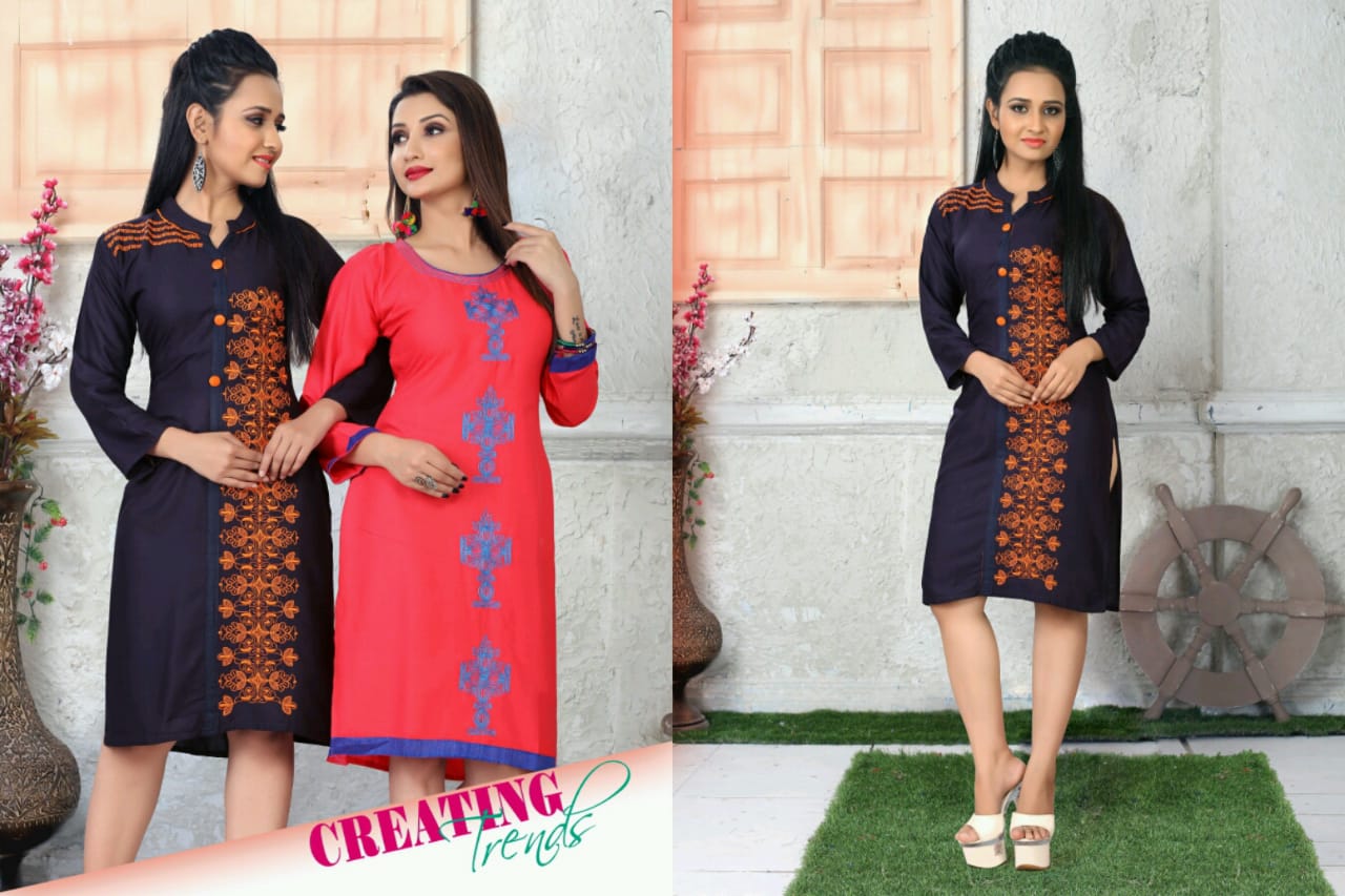 Pinkyy Nri Stylish Work Heavy Reyon Kurtis Wholesale Supplier And Dealer Surat
