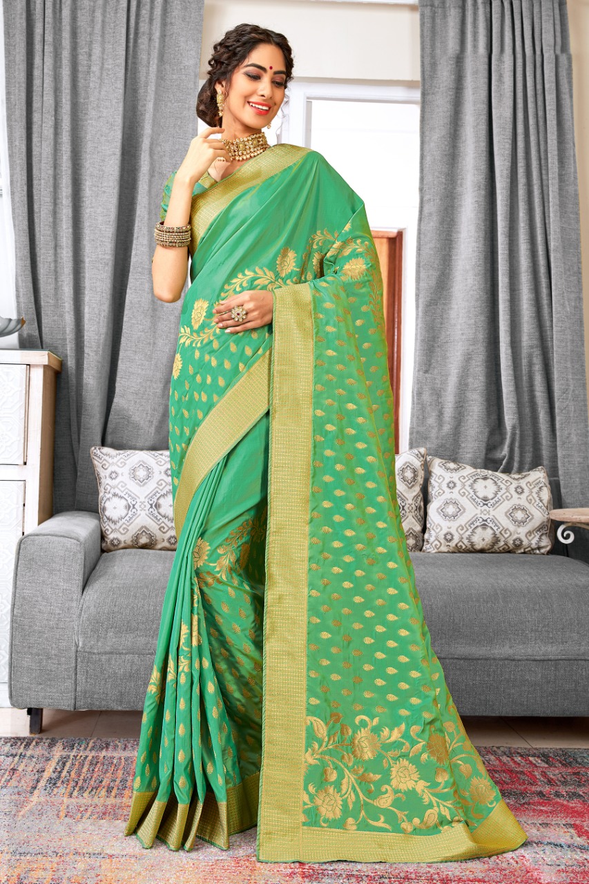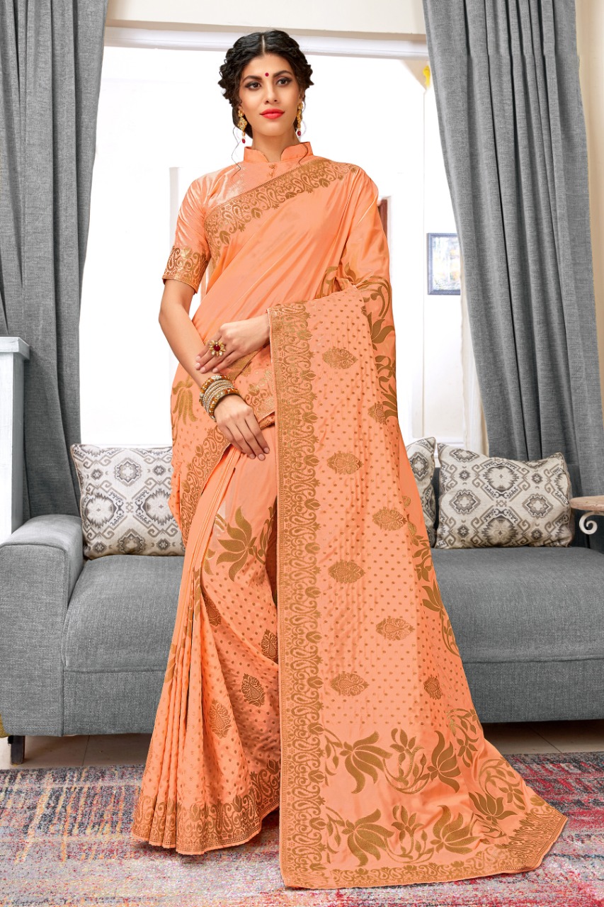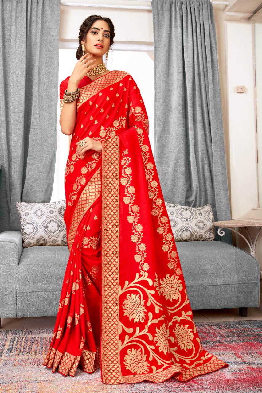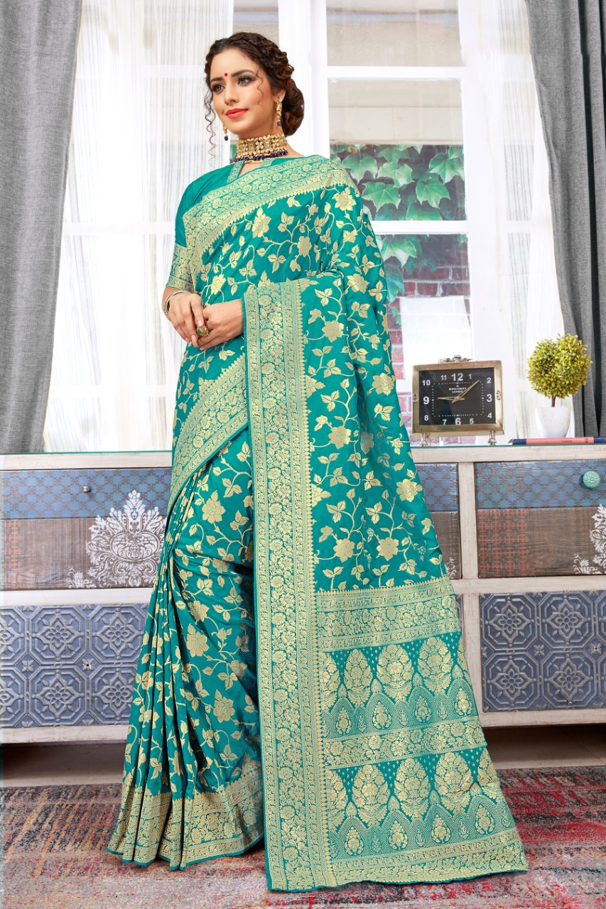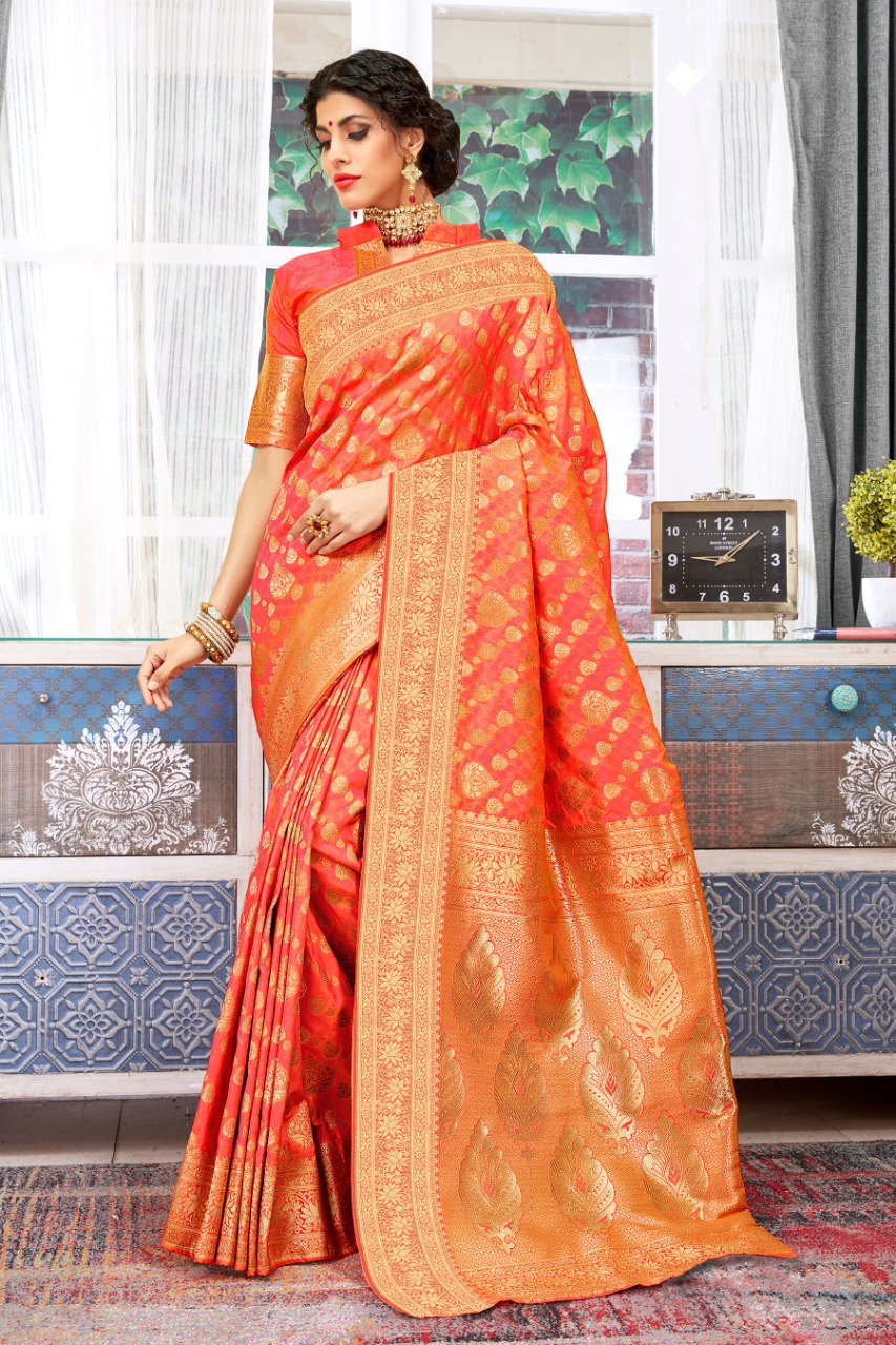 BRAND: SANGAM PRINTS CATALOG: *POLKI SILK* FABRIC: BANARASI SILK SINGLE RATE: 1635+5%GST WORK: FULL BODY ZARI WEAVING WITH BLOUSE PIECE ATTACHED ?*BOOK YOUR ORDERS NOW*? |