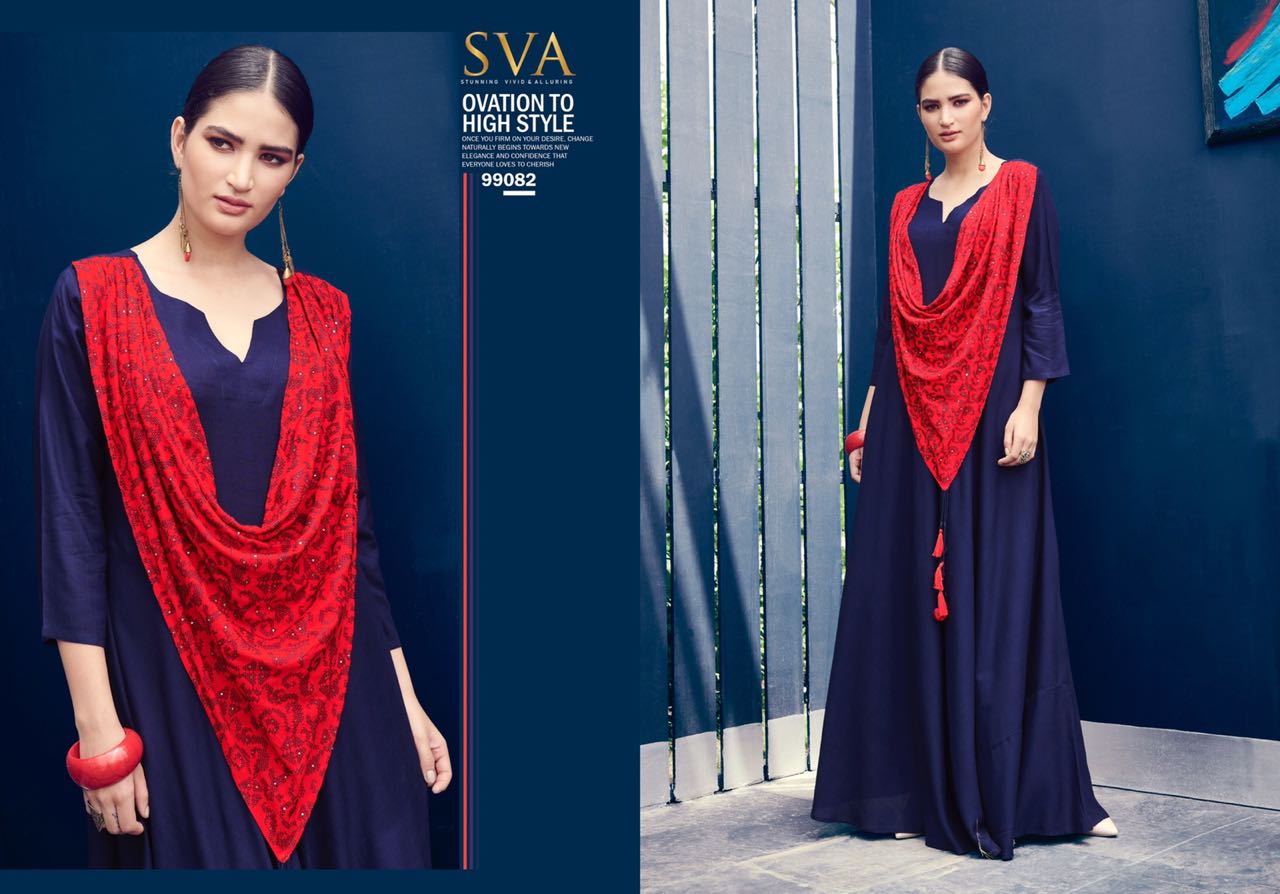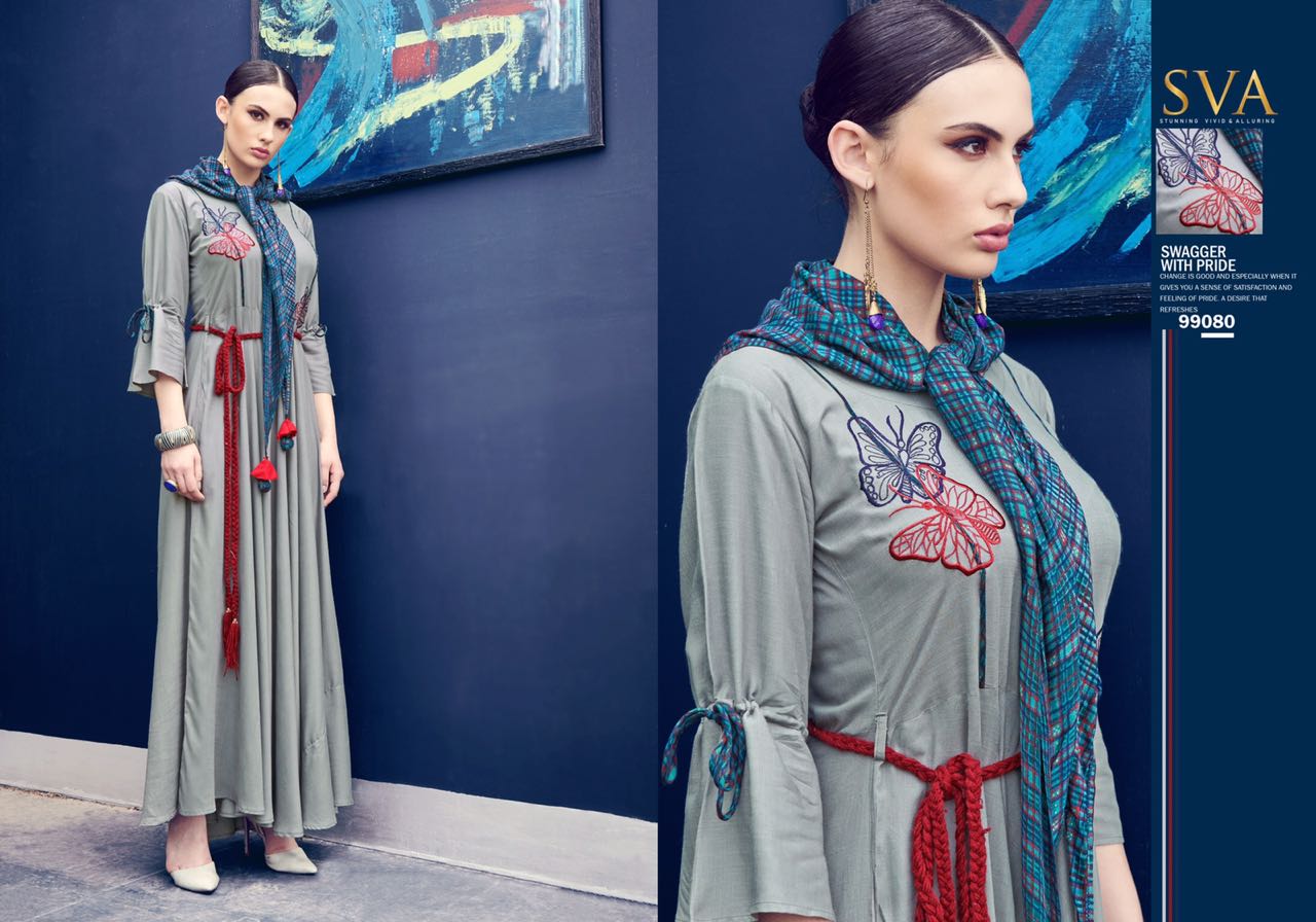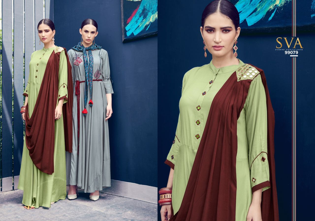 Posh By Sva Mirror And Scarf Work Fancy Look Designer Kurtis Wholesale Supplier And Dealer Surat