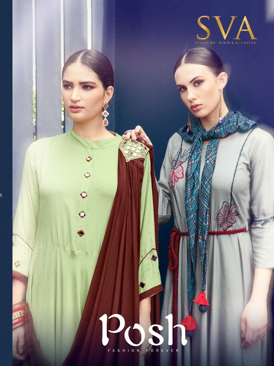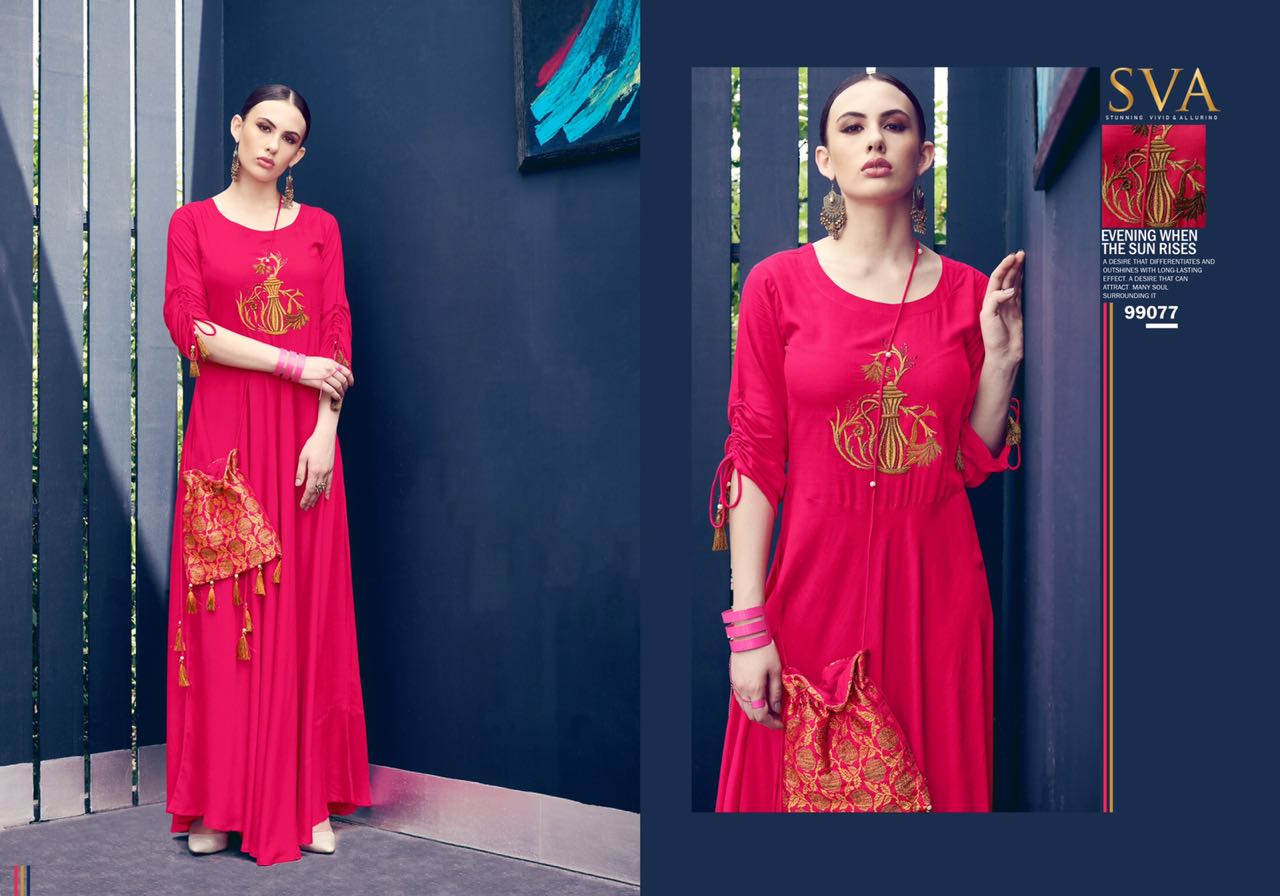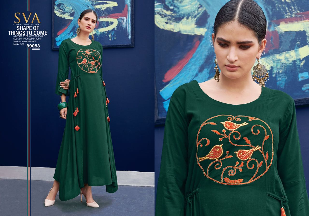 Posh By Sva Mirror And Scarf Work Fancy Look Designer Kurtis Wholesale Supplier And Dealer Surat