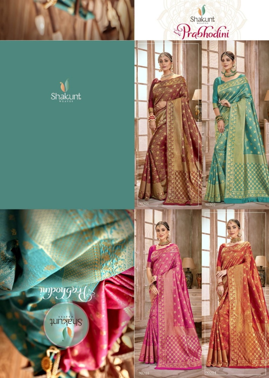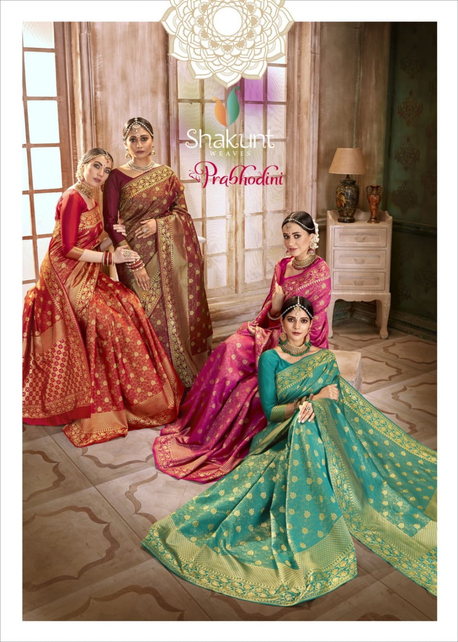 Buy Online Prabhodini By Shakunt Silk Designer Occasion Wear Sarees Wholesale Supplier India 4 Pcs of Full Catalogue at Wholesale Price. Looking for Prabhodini By Shakunt Silk Designer Occasion Wear Sarees Wholesale Supplier India Full Catalouge at Best Price? Buy Now Prabhodini By Shakunt Silk Designer Occasion Wear Sarees Wholesale Supplier India at Wholesale Rate of Rs 2380 with Total 4 Pcs from authroized dealer and supplier of BRAND'S Brand. Cost of Each piece is just only Rs 595 which is very low and affordable price to resale the product in your retail store ,This is Surat based Wholesale Supplier & Dealer of BRAND'S Brand. Click on Brand name to Know more about BRAND'S Brand's products.Call or Whatsapp on 9898838984 for booking or enquiry