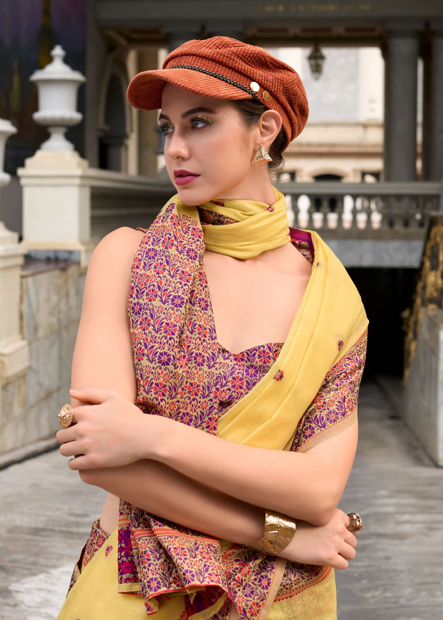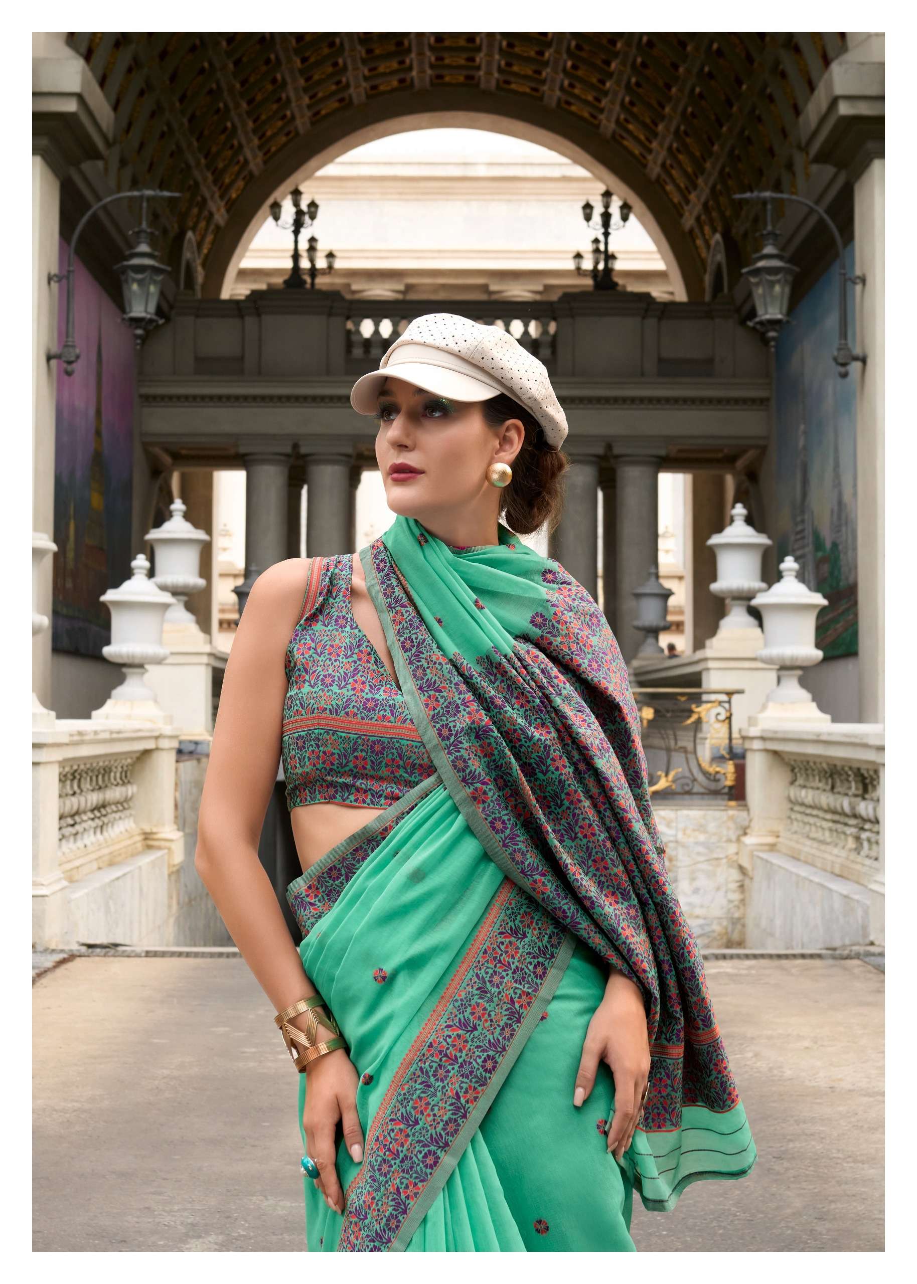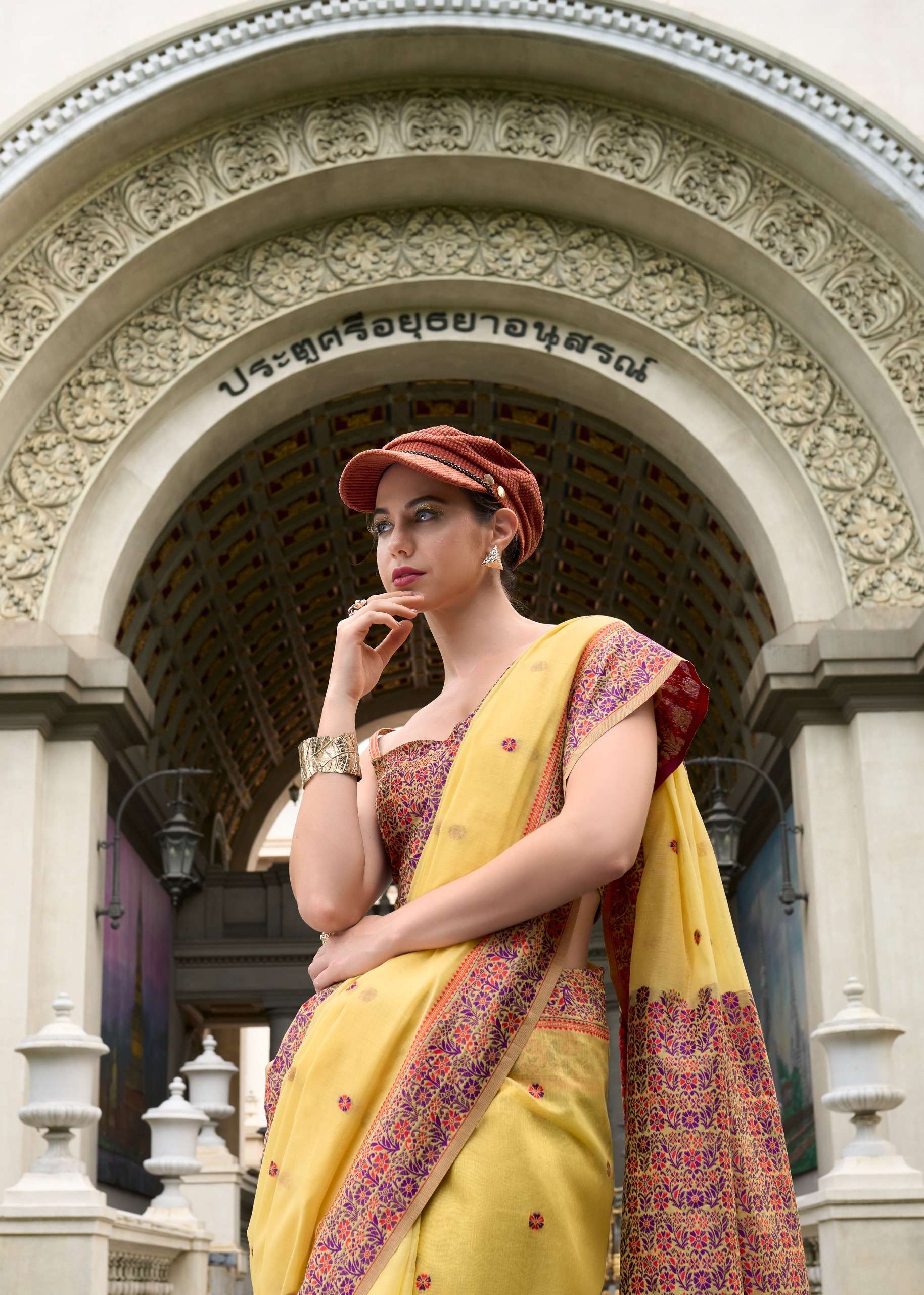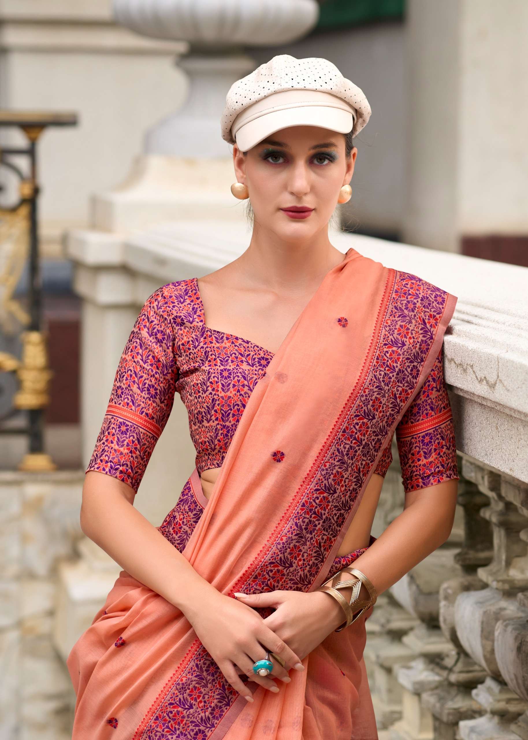➡️Fabric - *Soft Linen Cotton with Minakari Weaved Pallu & Blouse*