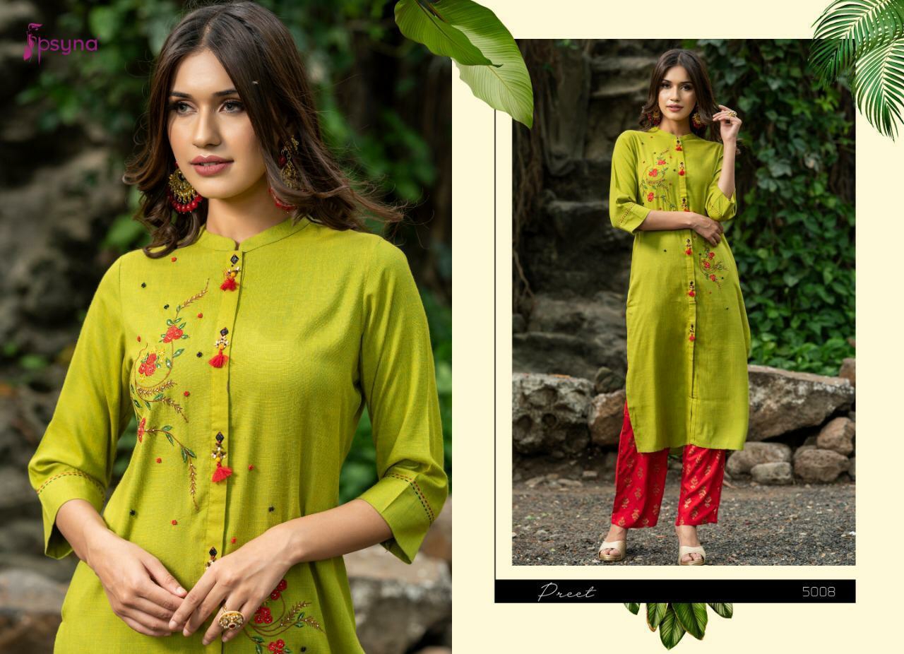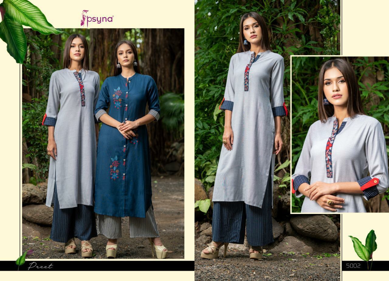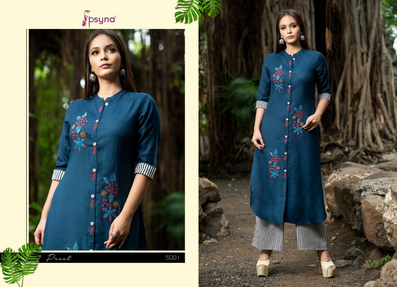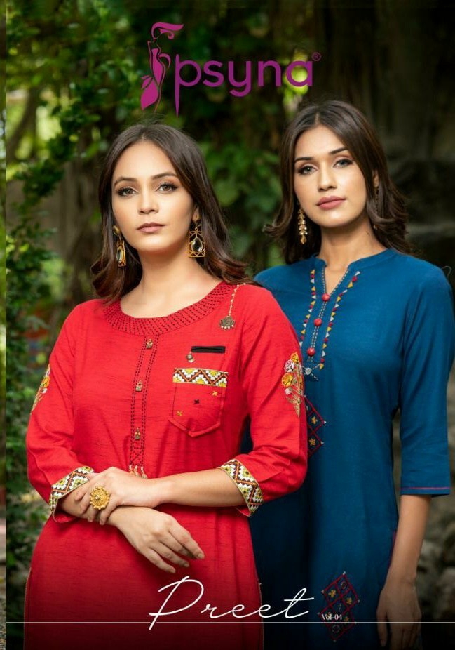 Buy Online Preet Vol 4 By Pysna Handloom Cotton Kurtis With Plazzo Wholesale Supplier Surat 8 Pcs of Full Catalogue at Wholesale Price. Looking for Preet Vol 4 By Pysna Handloom Cotton Kurtis With Plazzo Wholesale Supplier Surat Full Catalouge at Best Price? Buy Now Preet Vol 4 By Pysna Handloom Cotton Kurtis With Plazzo Wholesale Supplier Surat at Wholesale Rate of Rs 7800 with Total 8 Pcs from authroized dealer and supplier of PSYNA Brand. Cost of Each piece is just only Rs 975 which is very low and affordable price to resale the product in your retail store ,This is Surat based Wholesale Supplier & Dealer of PSYNA Brand. Click on Brand name to Know more about PSYNA Brand's products.Call or Whatsapp on 9898838984 for booking or enquiry