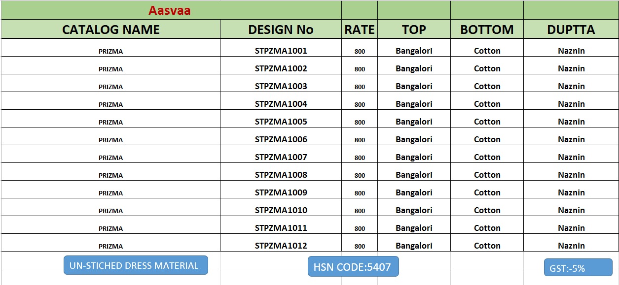 Buy Online Prizma Fancy Designer Banglori Salwar Kameez Catlog Wholesaler Surat 12 Pcs of Full Catalogue at Wholesale Price. Looking for Prizma Fancy Designer Banglori Salwar Kameez Catlog Wholesaler Surat Full Catalouge at Best Price? Buy Now Prizma Fancy Designer Banglori Salwar Kameez Catlog Wholesaler Surat at Wholesale Rate of Rs 9600 with Total 12 Pcs from authroized dealer and supplier of Brand. Cost of Each piece is just only Rs 800 which is very low and affordable price to resale the product in your retail store ,This is Surat based Wholesale Supplier & Dealer of Brand. Click on Brand name to Know more about Brand's products.Call or Whatsapp on 9898838984 for booking or enquiry