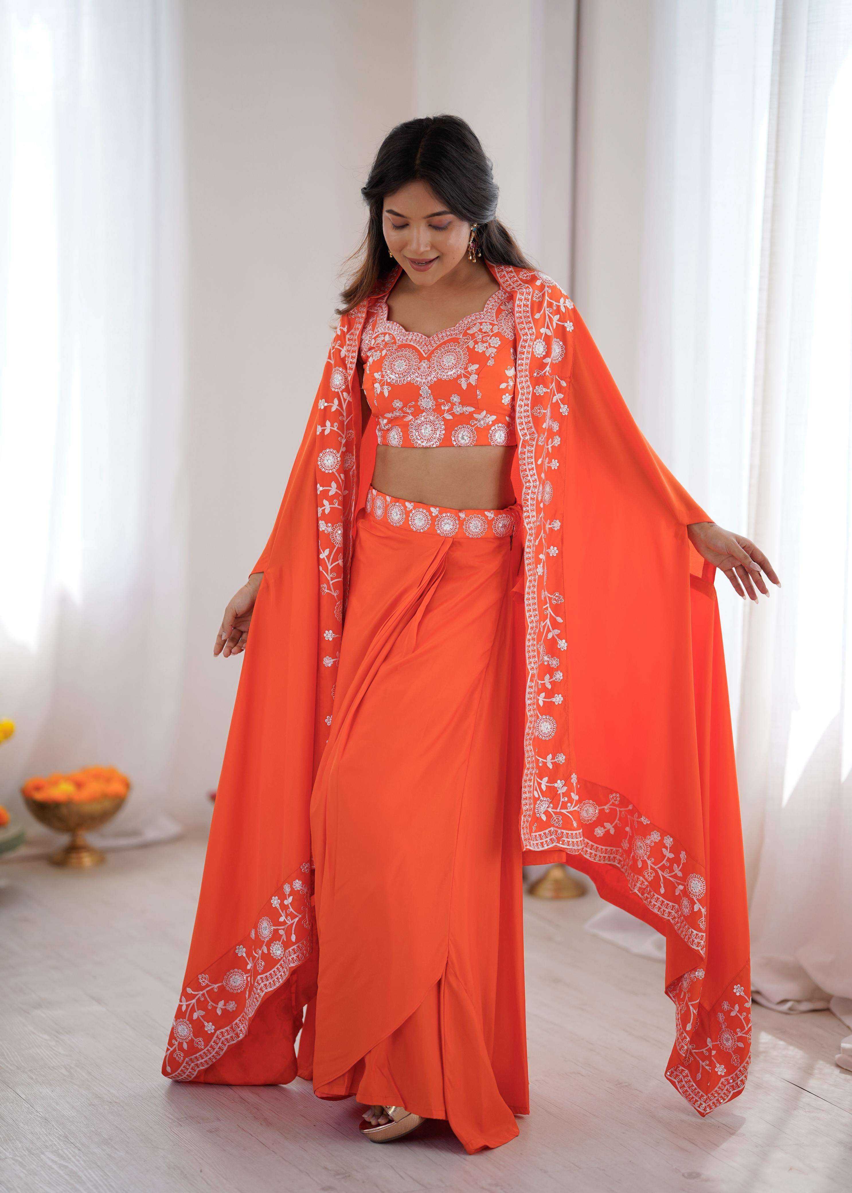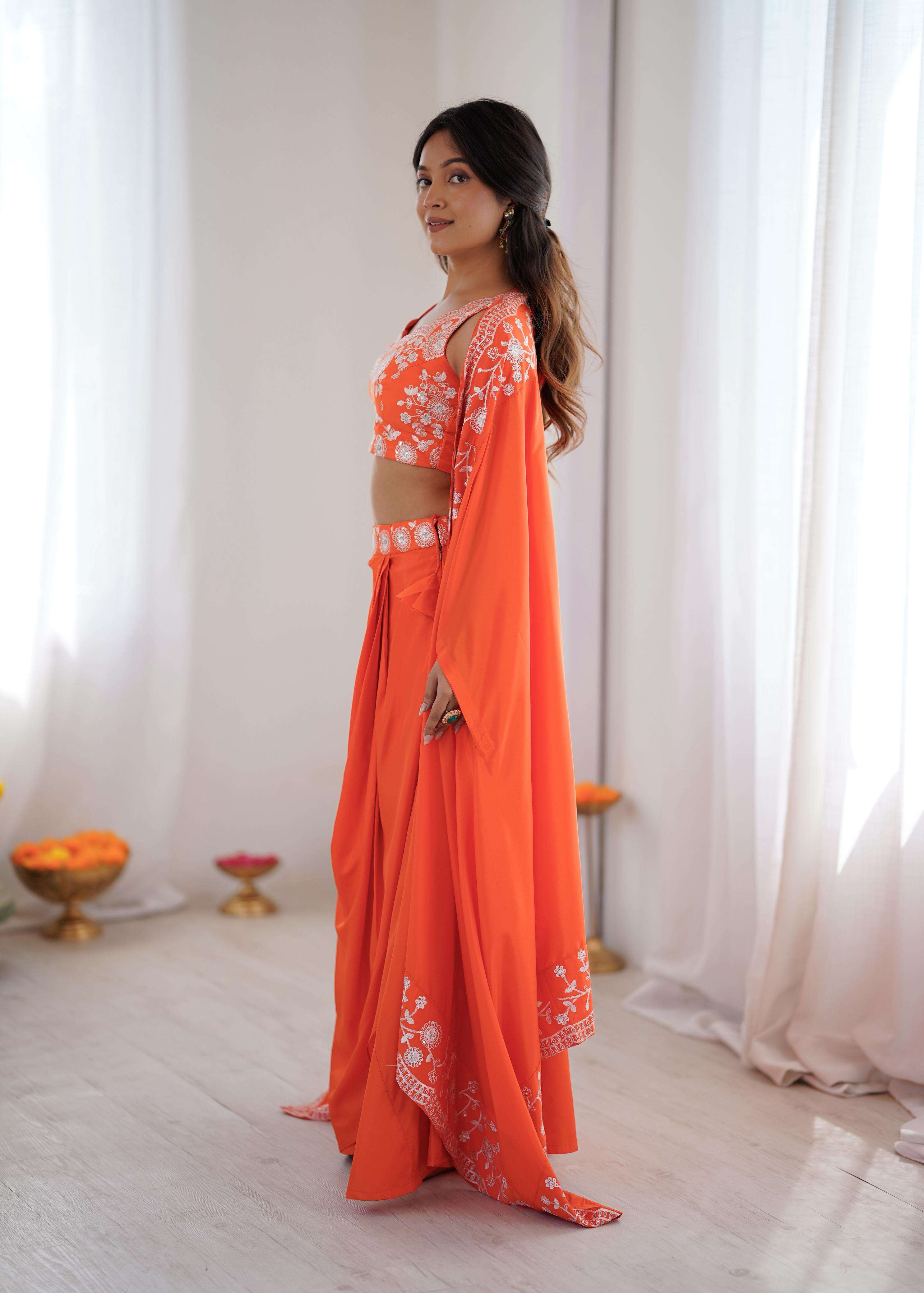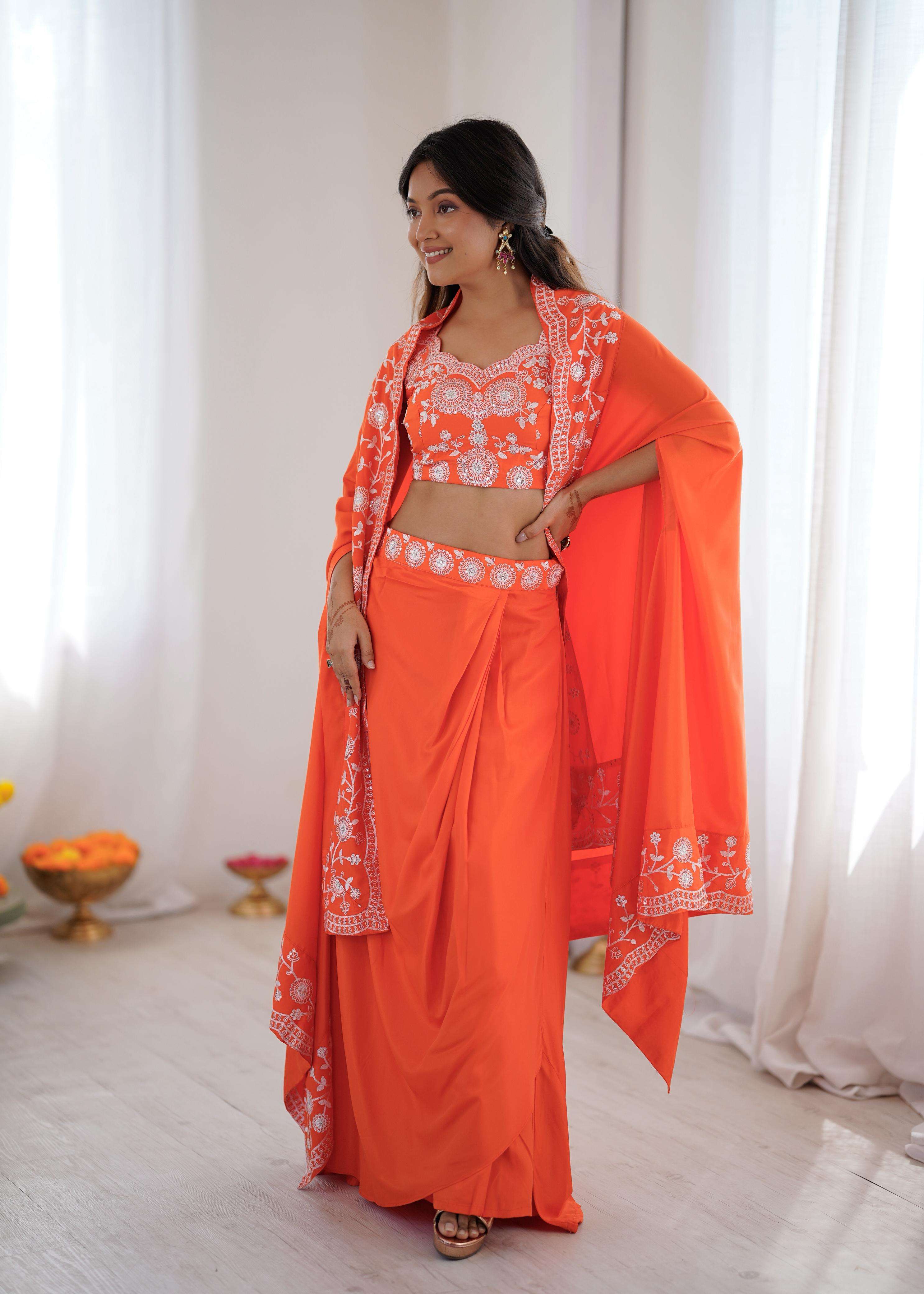 ⸻ 👗 *Western Dhoti* • *Fabric*: French Crep • *Work*: Thred With Sequnce Work • *Size*: up to Size 44 (With Size zipper)