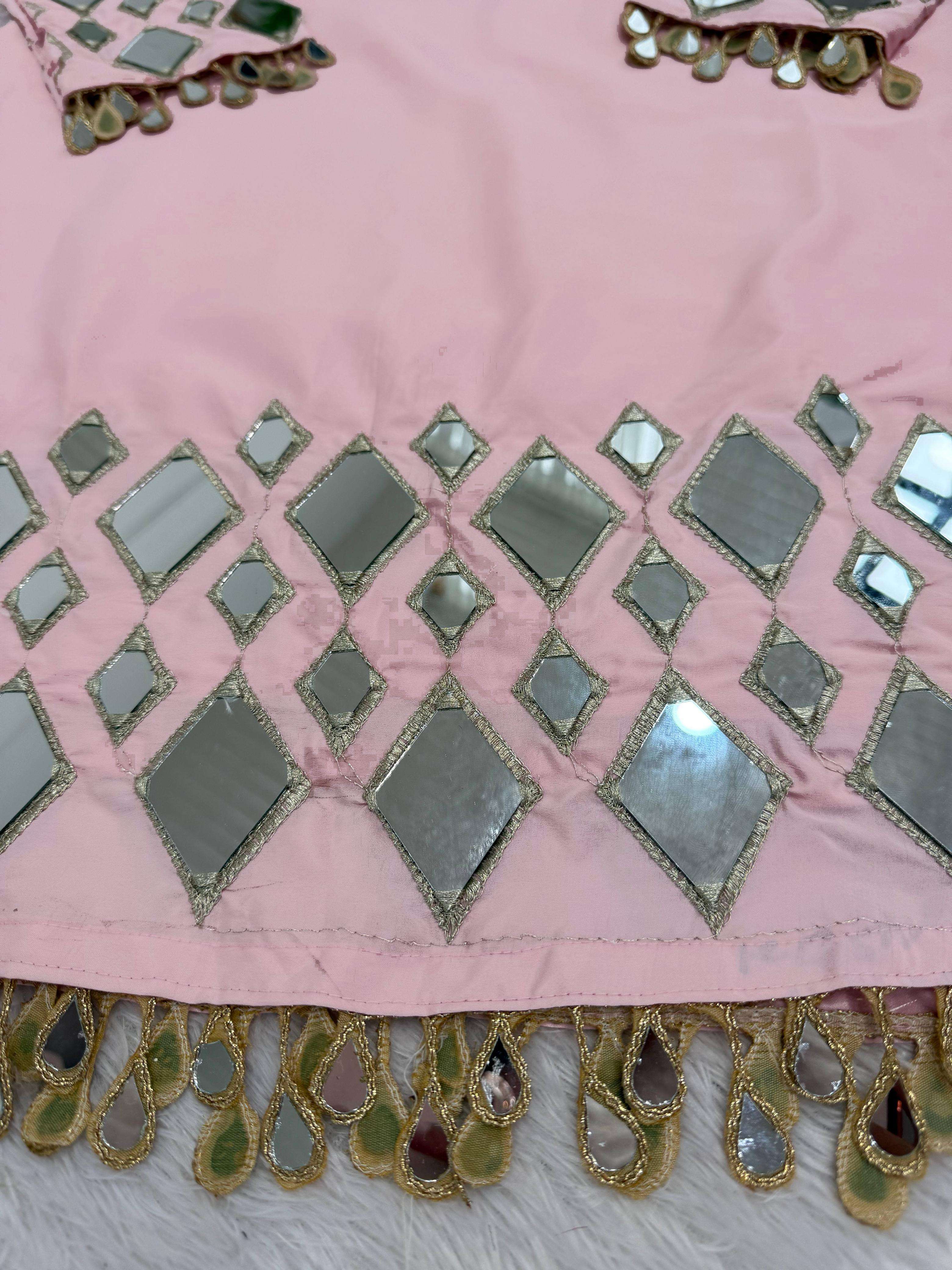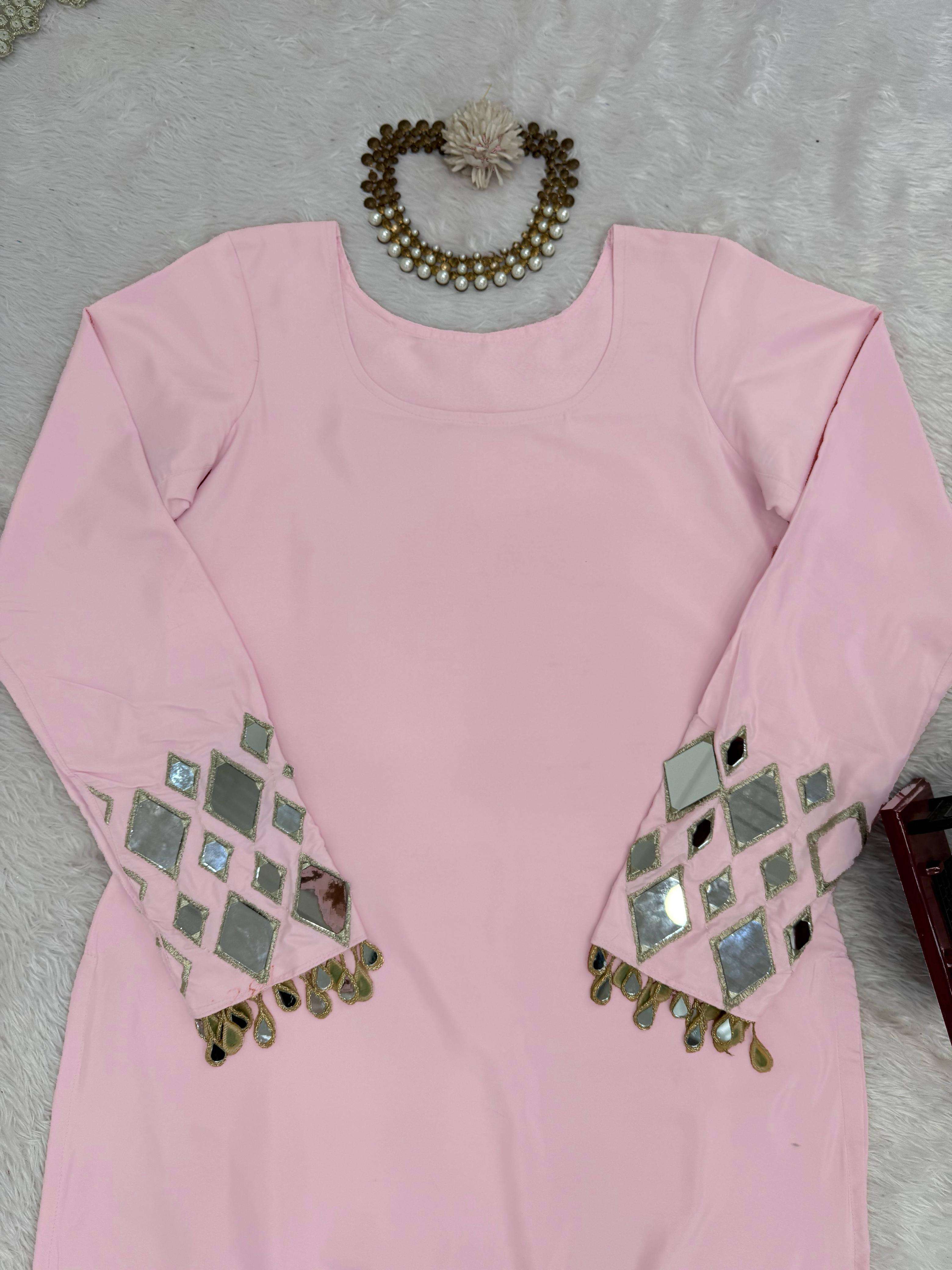 ⸻ 🧜♀️ *Suit* • *Fabric*: Premium French crep • *Lining*: Soft Micro Inner • *Work*: Embroidery Thread Detailing With Real Mirror 🪞 • Stitching: *M (38)’L(40),XL (42), XXL (44)* – Ready to wear