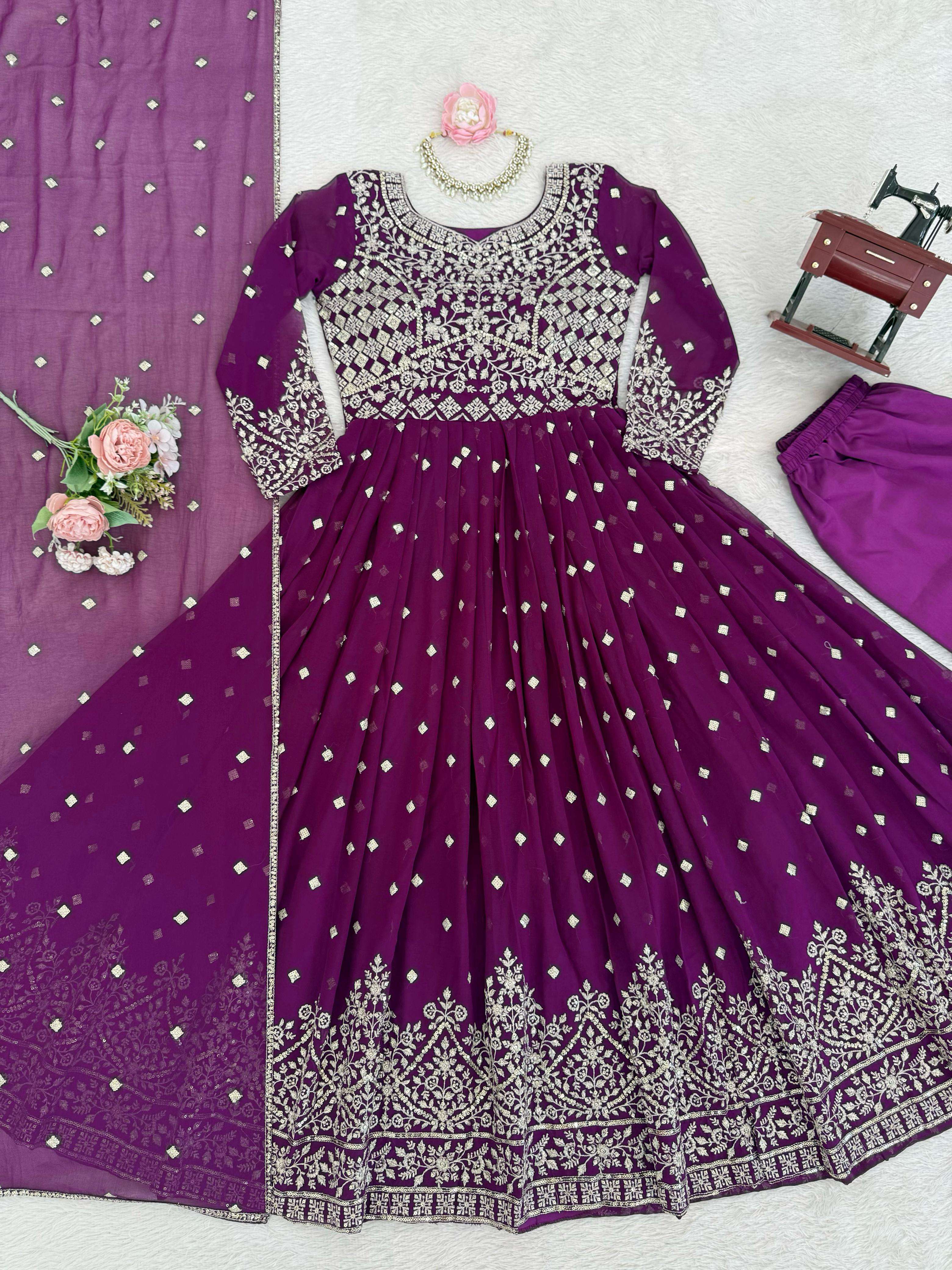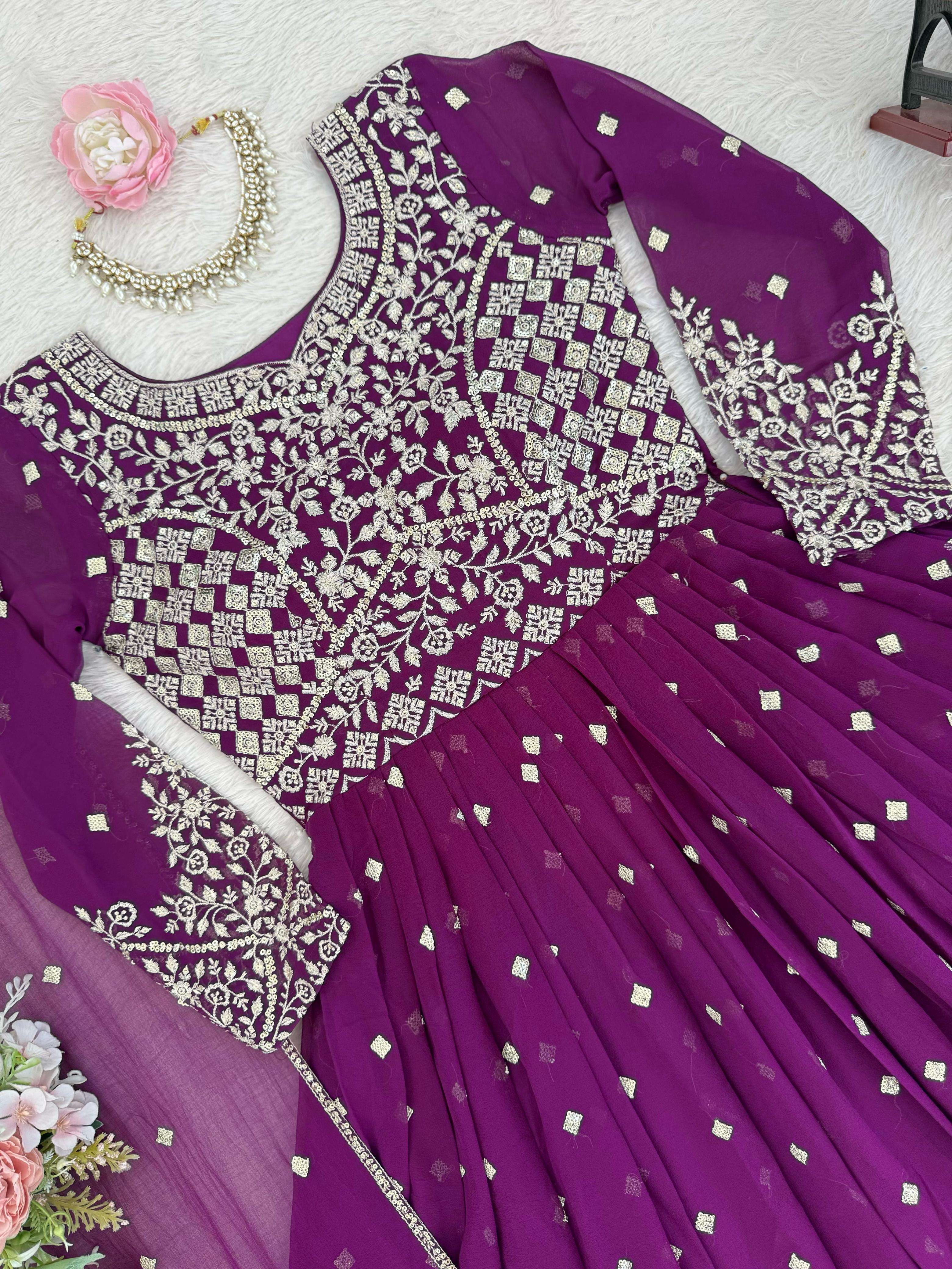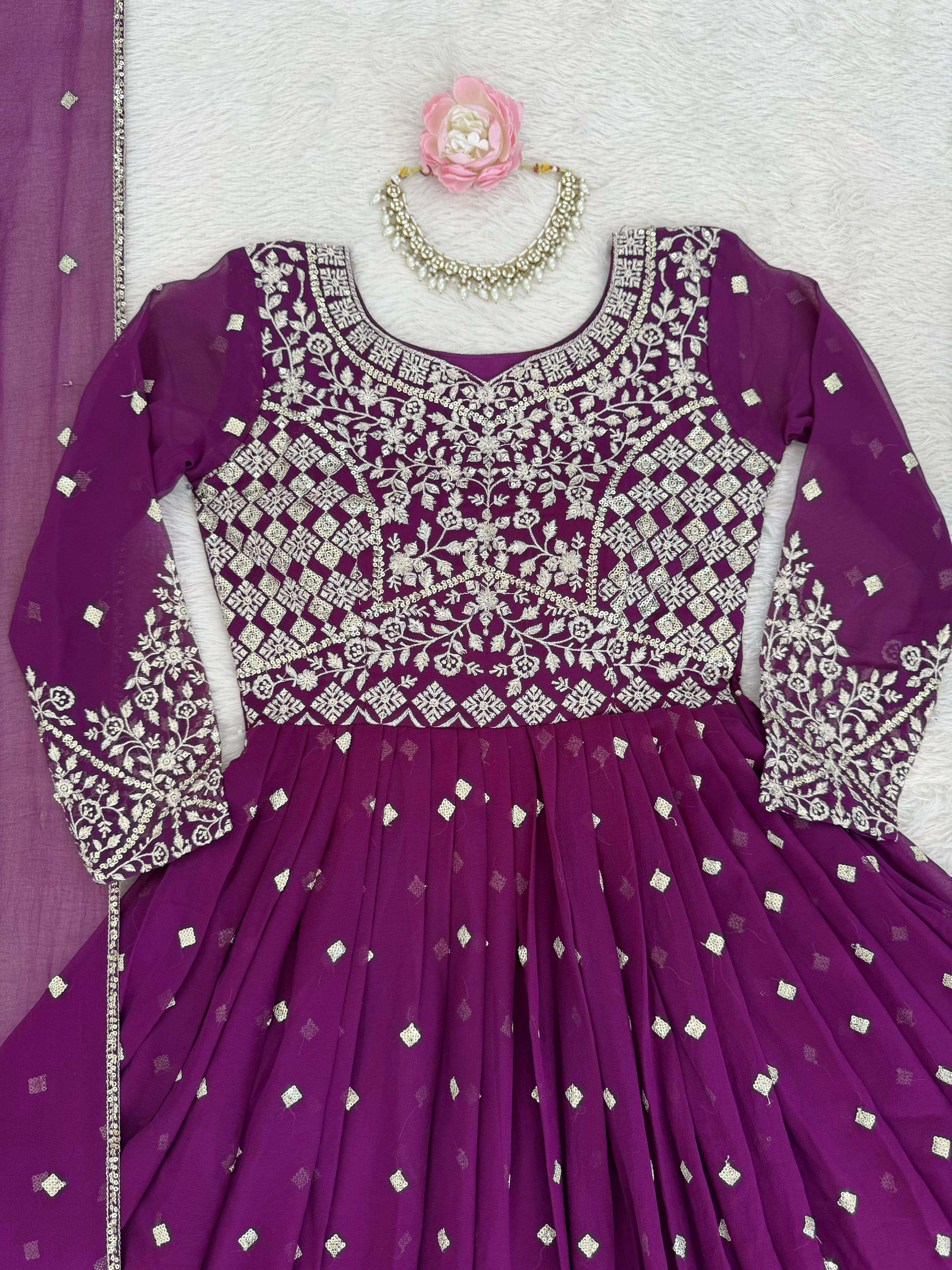 ⸻ 🧜♀️ *Anarkali* • *Fabric*: Heavy Faux Georgette • *Lining*: Soft Micro Inner • *Work*: Designer Embroidery with Sequin & Thread Detailing • *Stitching*: *M(38), L(40), XL(42), XXL(44)* – Ready to wear