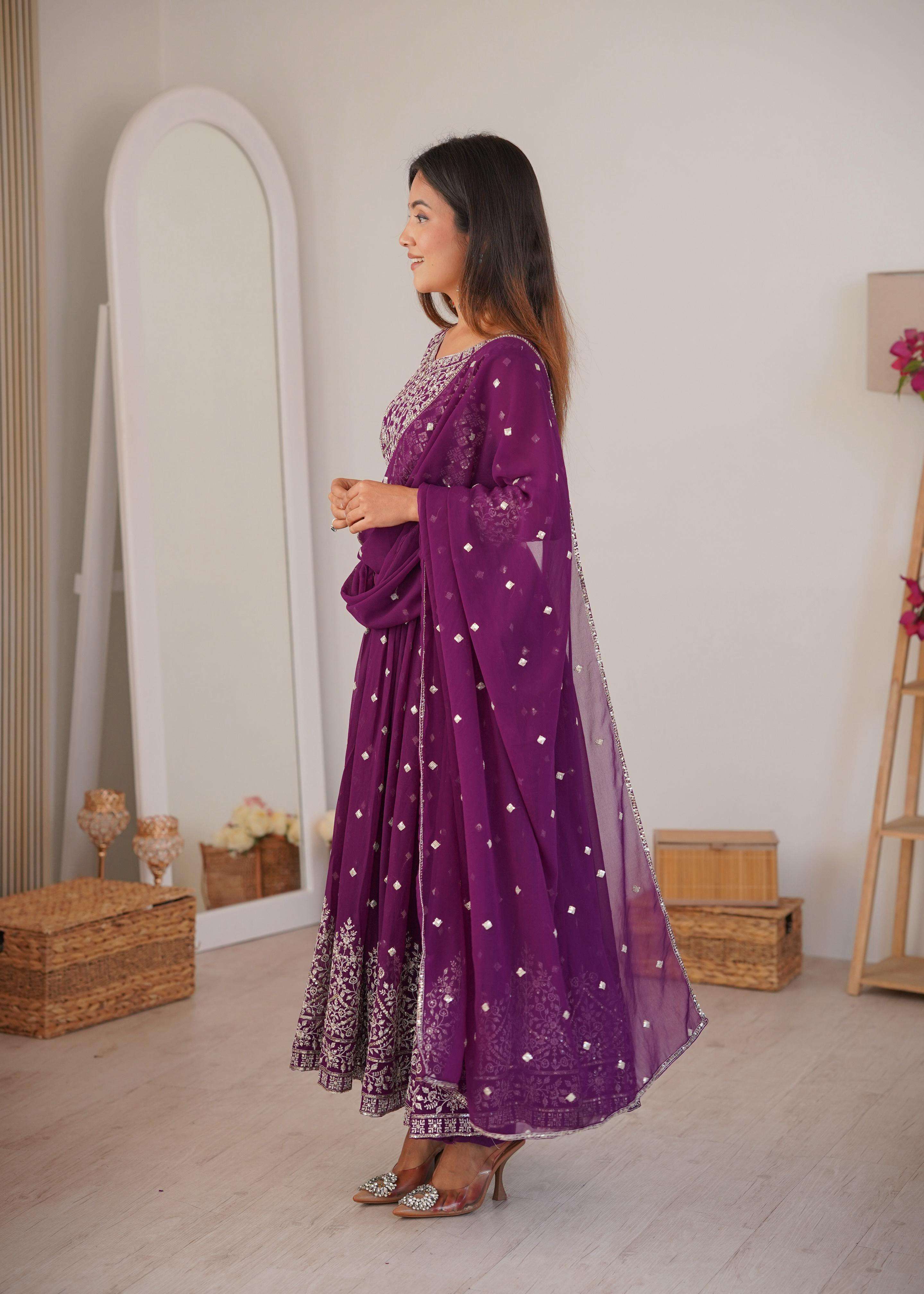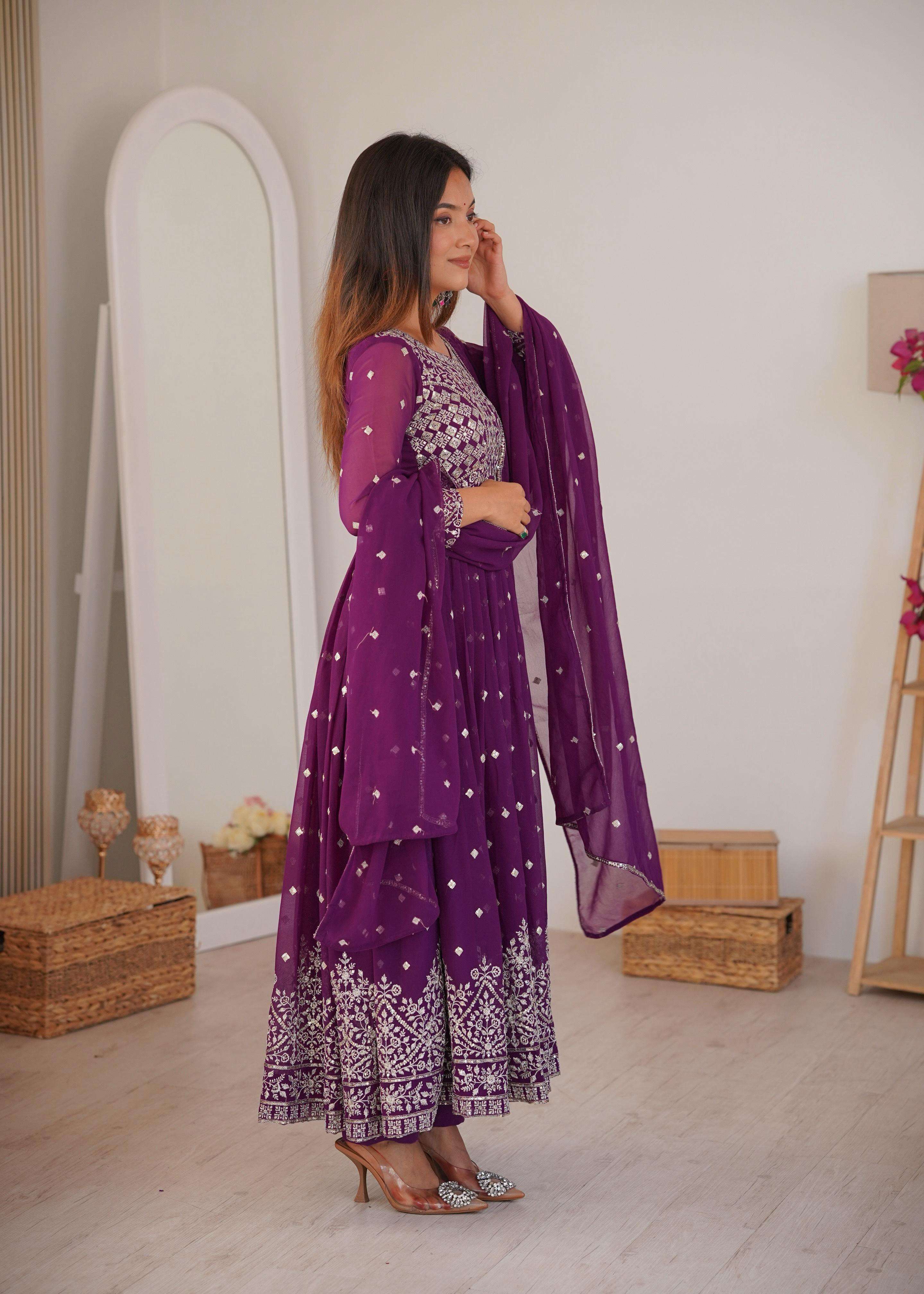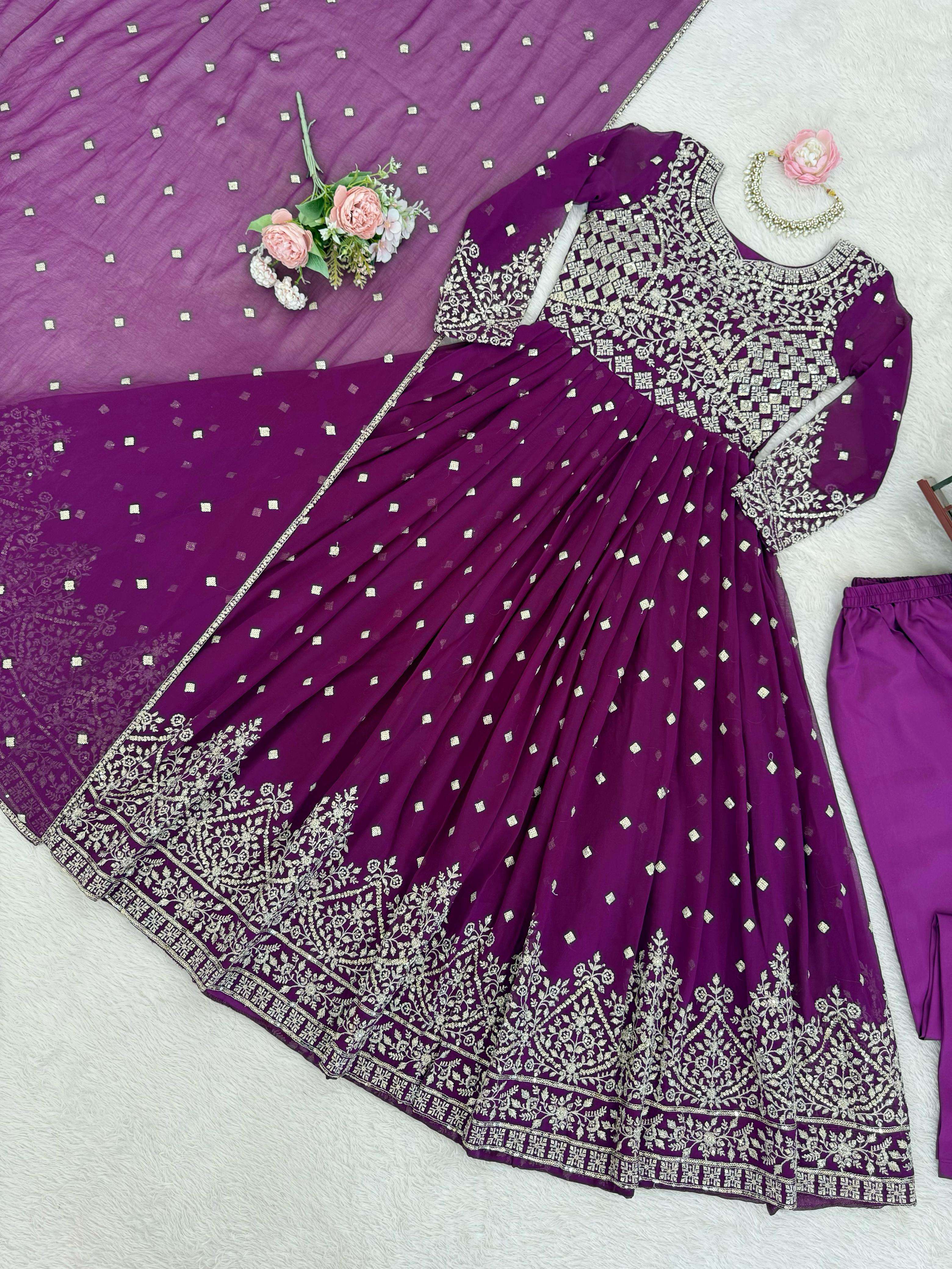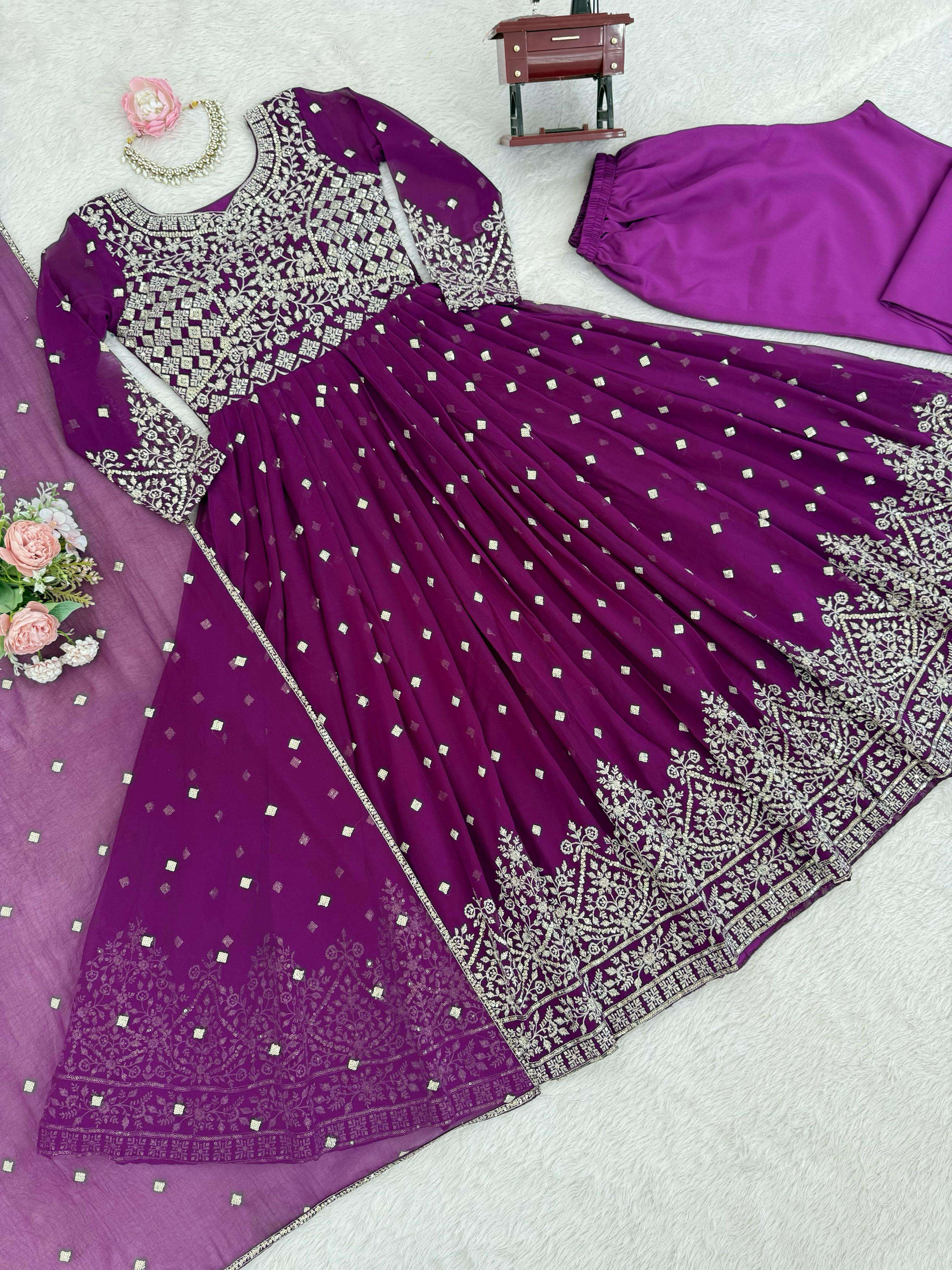 ⸻ 🧜♀️ *Anarkali* • *Fabric*: Heavy Faux Georgette • *Lining*: Soft Micro Inner • *Work*: Designer Embroidery with Sequin & Thread Detailing • *Stitching*: *M(38), L(40), XL(42), XXL(44)* – Ready to wear