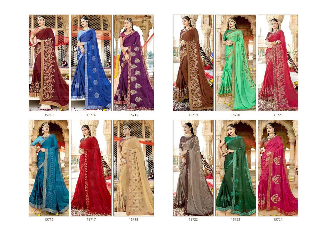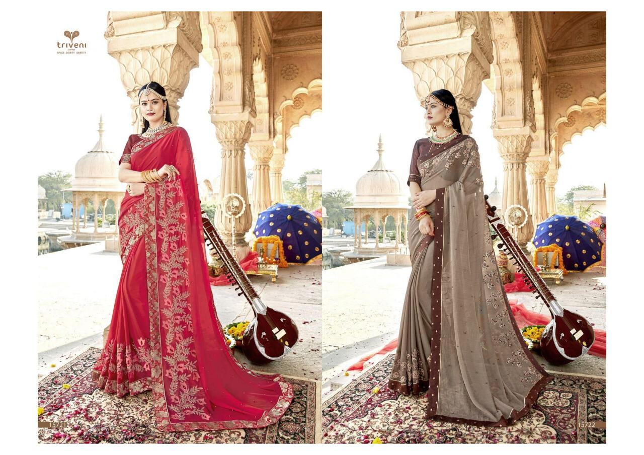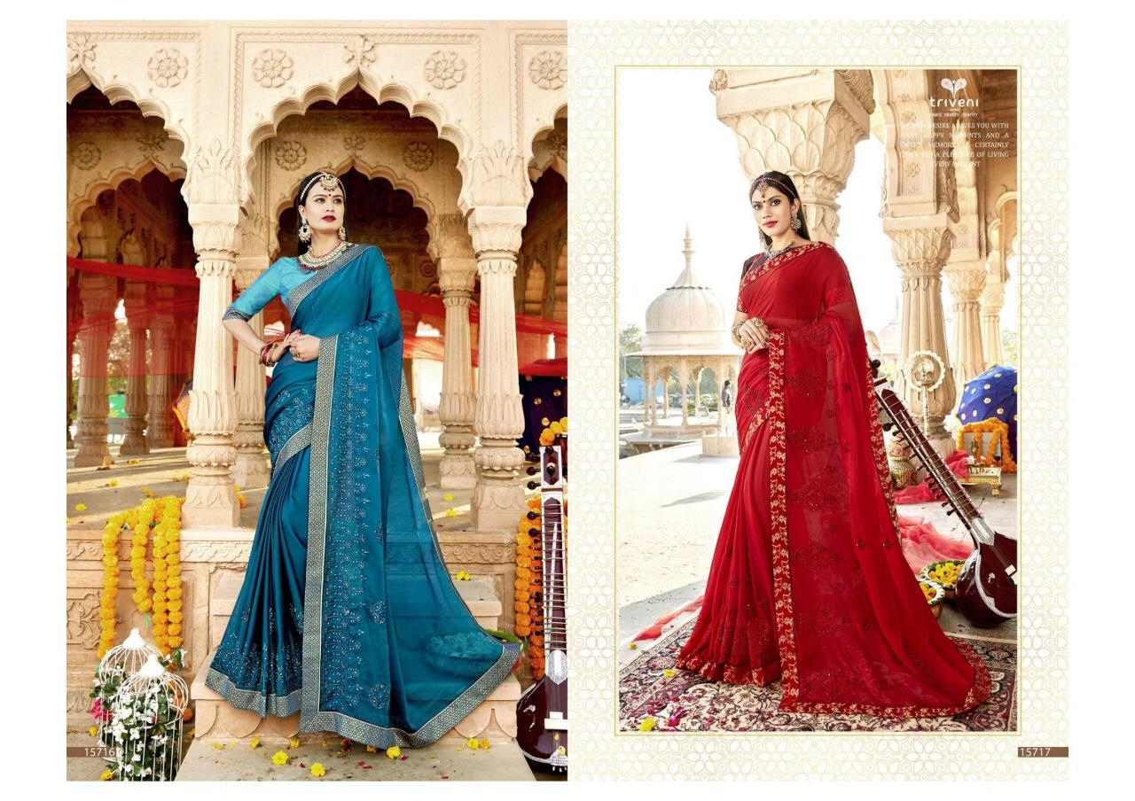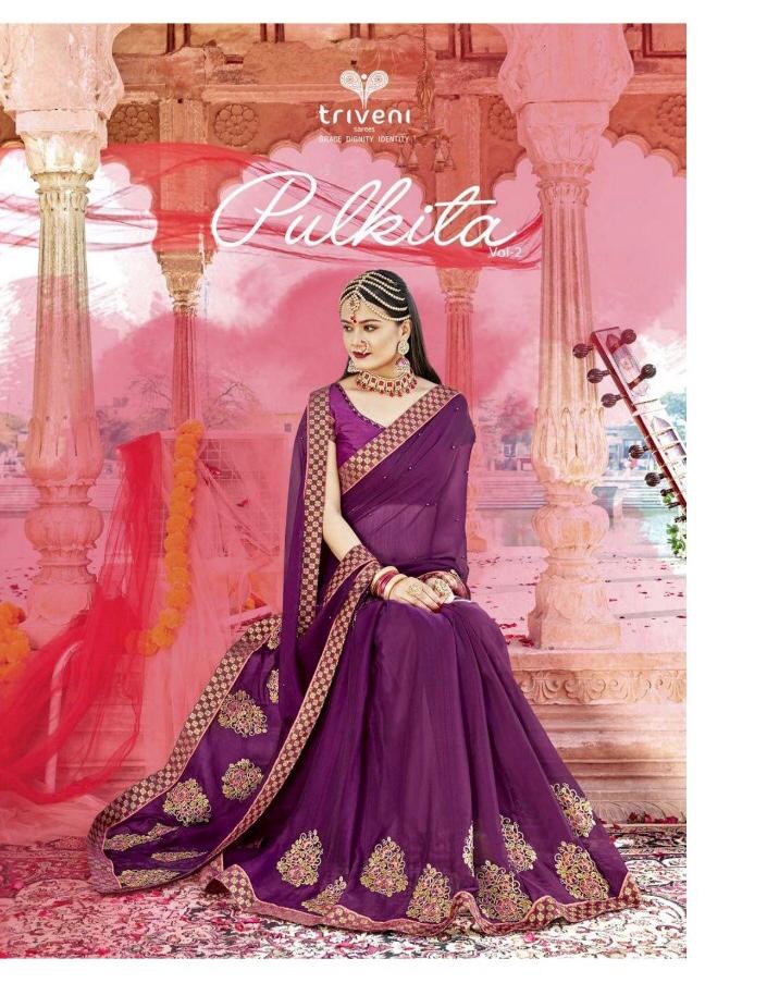 Buy Online Pulkita Vol 2 By Triveni 15713 Series Fancy Party Wear Saree Collection Wholesaler Surat 12 Pcs of Full Catalogue at Wholesale Price. Looking for Pulkita Vol 2 By Triveni 15713 Series Fancy Party Wear Saree Collection Wholesaler Surat Full Catalouge at Best Price? Buy Now Pulkita Vol 2 By Triveni 15713 Series Fancy Party Wear Saree Collection Wholesaler Surat at Wholesale Rate of Rs 9492 with Total 12 Pcs from authroized dealer and supplier of TRIVENI Brand. Cost of Each piece is just only Rs 791 which is very low and affordable price to resale the product in your retail store ,This is Surat based Wholesale Supplier & Dealer of TRIVENI Brand. Click on Brand name to Know more about TRIVENI Brand's products.Call or Whatsapp on 9898838984 for booking or enquiry