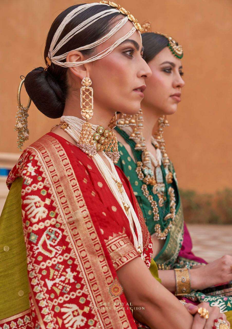 ➡️ *Catalogue:- Pure Patola* ➡️ *Fabric :- Mercerized sigma silk* *With unique patola border - pallu and elegant gold print with gold printed waist (kandora) belt..* ➡️ *Rate :- 875/-*