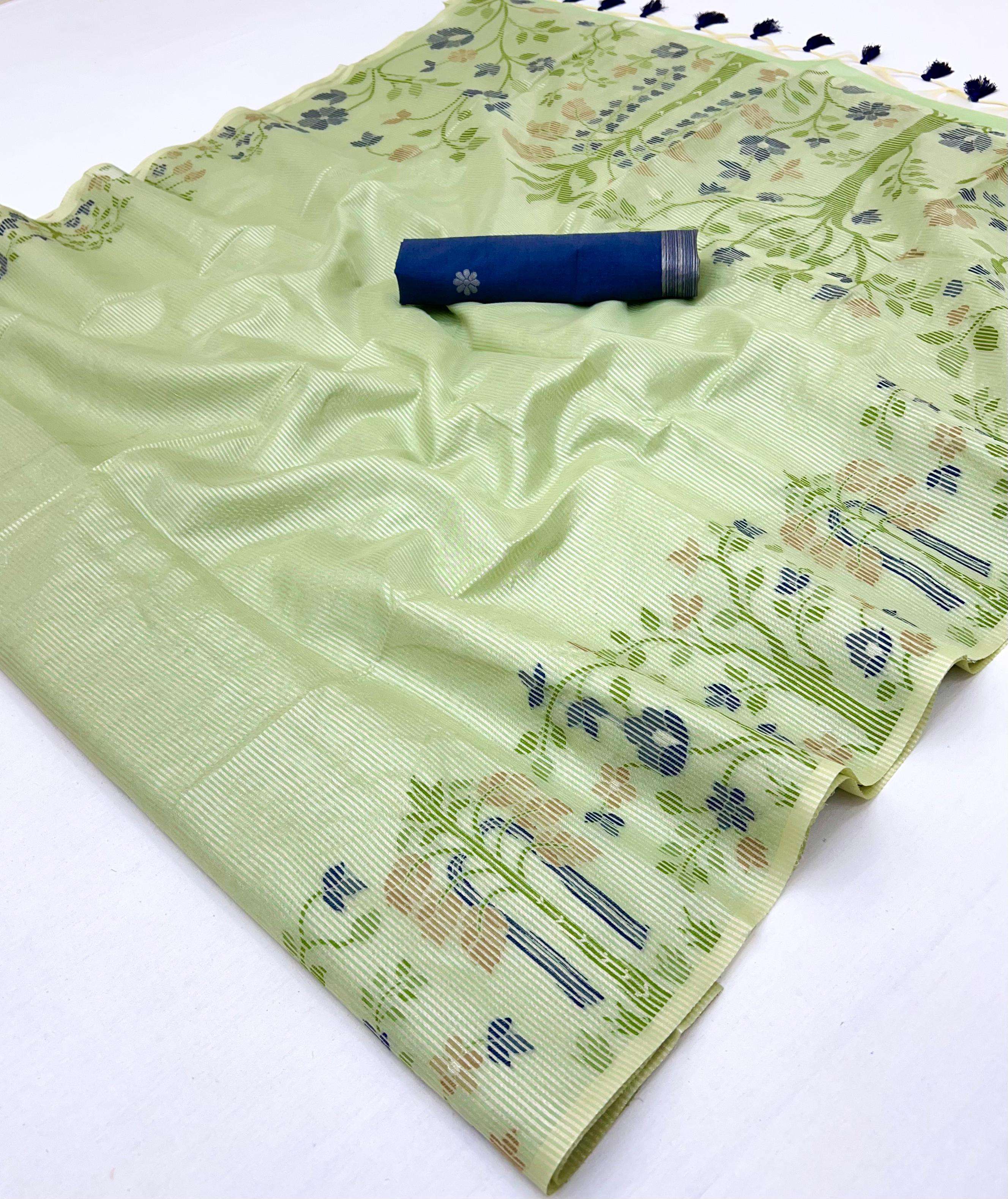 🔰 FABRIC:- *HANDLOOM ZARI TISSUE - BRASSO WEAVING*