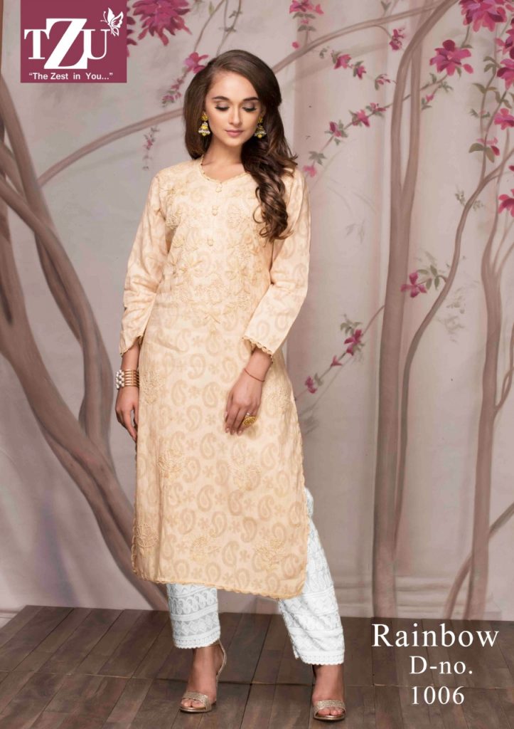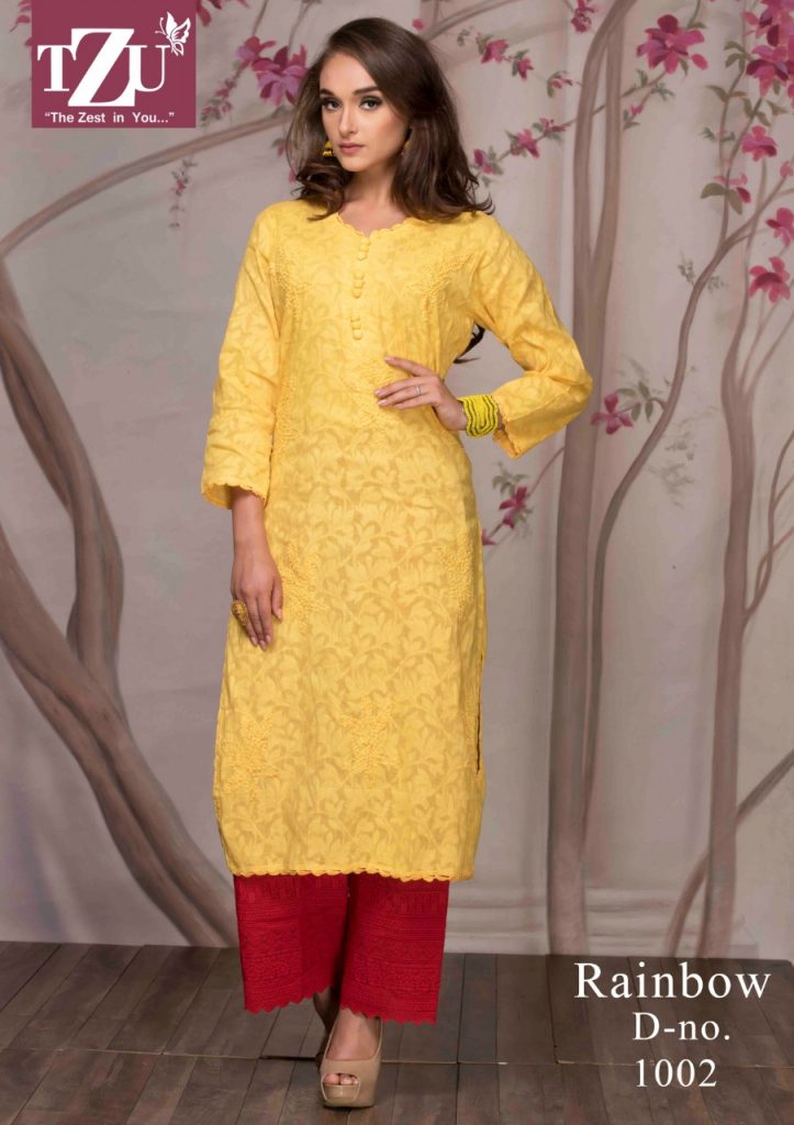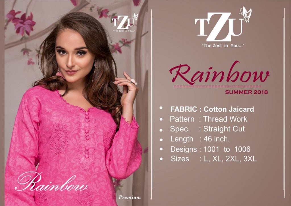Buy Online Rainbow By Tzu Cotton Jacquard Thread Work Kurtis Wholesale Supplier And Dealer Gujarat 6 Pcs of Full Catalogue at Wholesale Price. Looking for Rainbow By Tzu Cotton Jacquard Thread Work Kurtis Wholesale Supplier And Dealer Gujarat Full Catalouge at Best Price? Buy Now Rainbow By Tzu Cotton Jacquard Thread Work Kurtis Wholesale Supplier And Dealer Gujarat at Wholesale Rate of Rs 3270 with Total 6 Pcs from authroized dealer and supplier of BRAND'S Brand. Cost of Each piece is just only Rs 545 which is very low and affordable price to resale the product in your retail store ,This is Surat based Wholesale Supplier & Dealer of BRAND'S Brand. Click on Brand name to Know more about BRAND'S Brand's products.Call or Whatsapp on 9898838984 for booking or enquiry