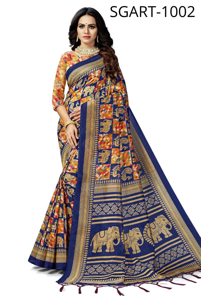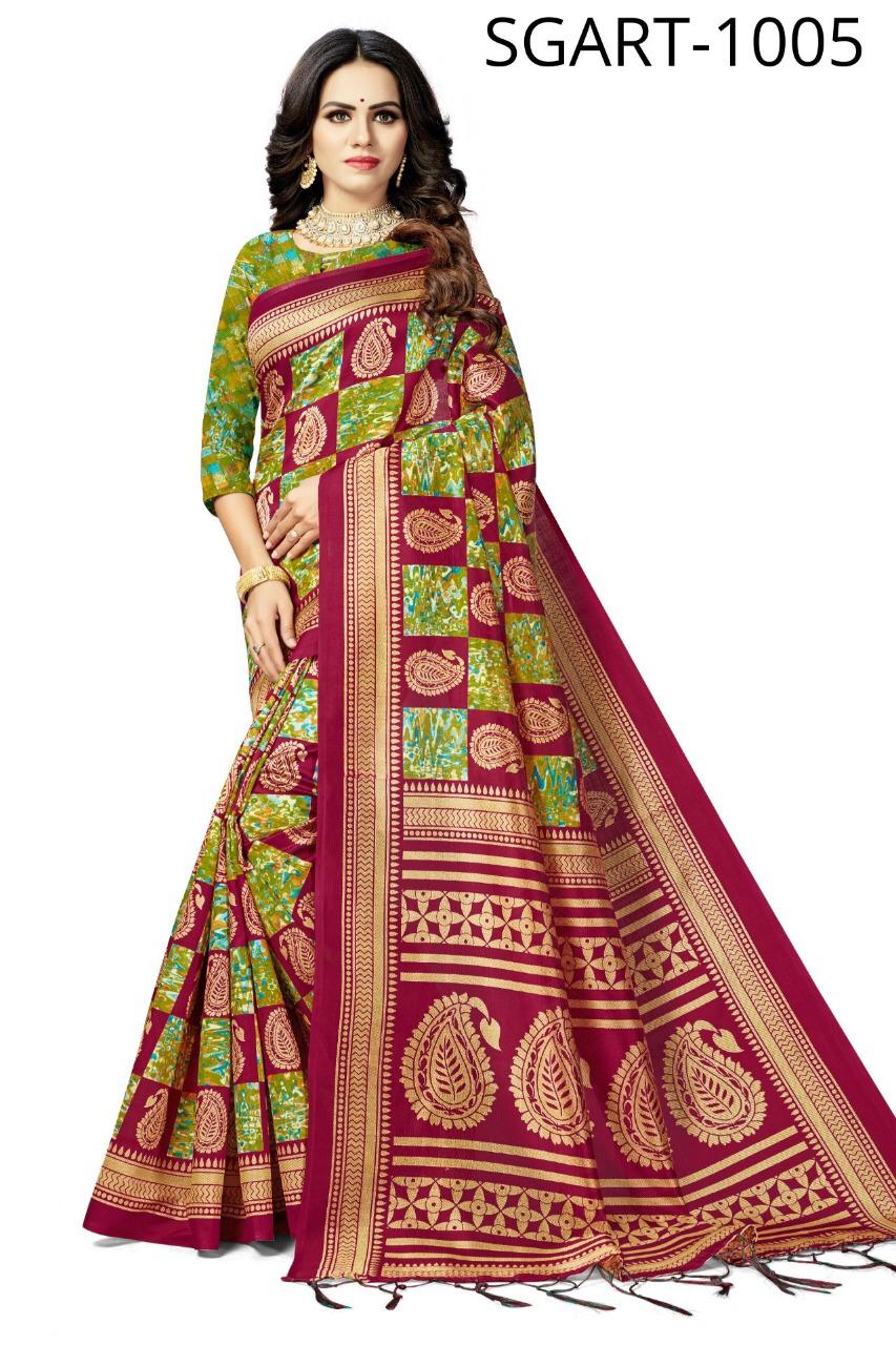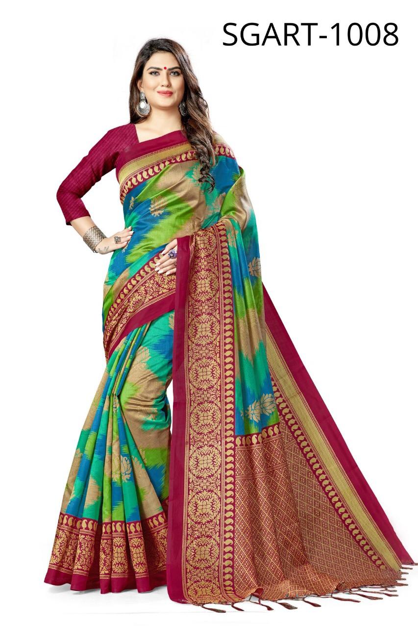 New Arrival by Sangam Catalog Name :- *Raj Nandani* Fabric :- Art Silk Saree *Price :- 325 + 5 % gst?* *Note :- Single & Full Both are available* So you take order in both way Single extra 100 Hurry up Delivery- Running |