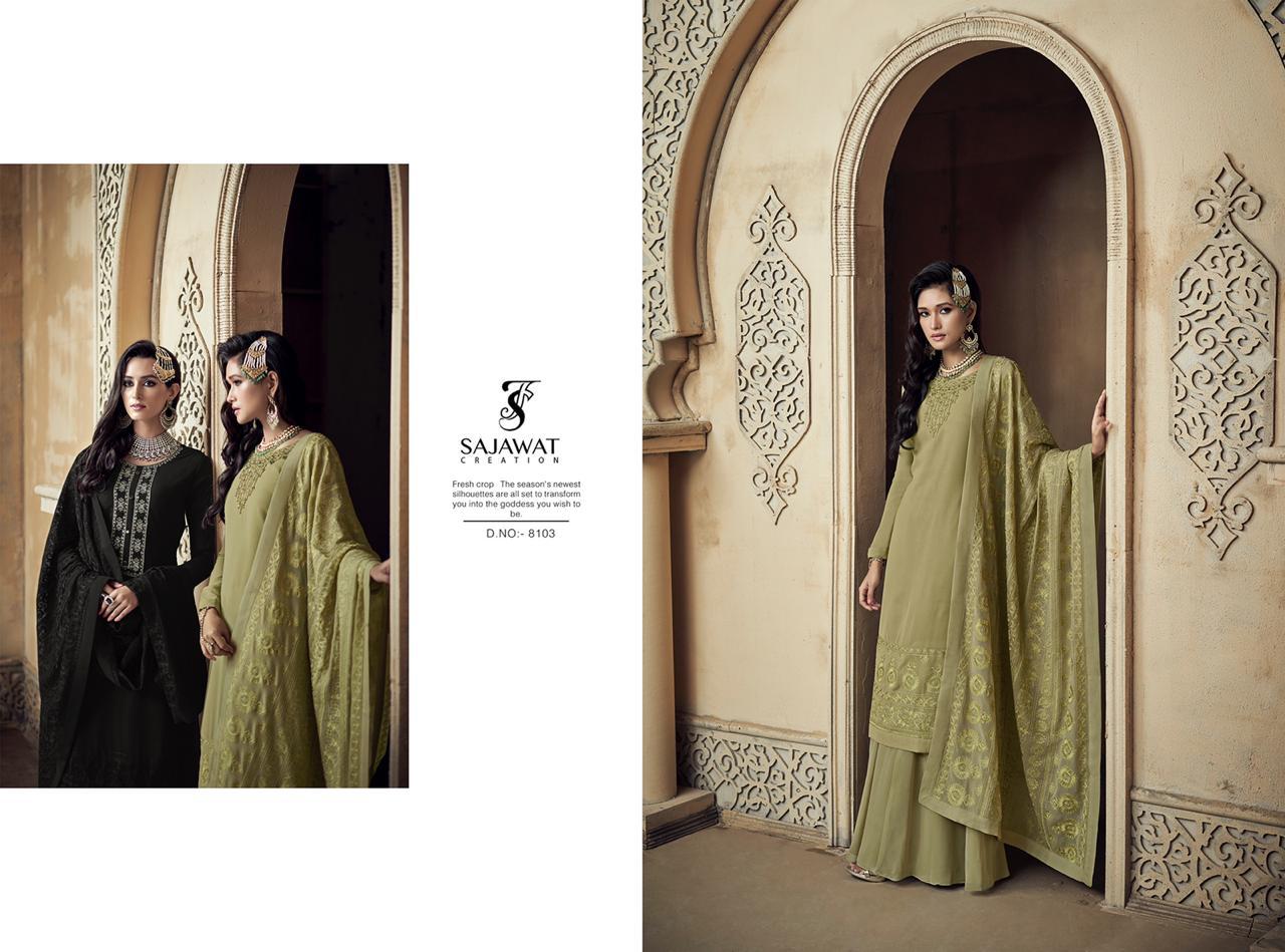 Buy Online Rajani Vol 1 By Sajawat Series 8101 Designer Party Wear Suits Wholesale Supplier Gujarat 6 Pcs of Full Catalogue at Wholesale Price. Looking for Rajani Vol 1 By Sajawat Series 8101 Designer Party Wear Suits Wholesale Supplier Gujarat Full Catalouge at Best Price? Buy Now Rajani Vol 1 By Sajawat Series 8101 Designer Party Wear Suits Wholesale Supplier Gujarat at Wholesale Rate of Rs 9570 with Total 6 Pcs from authroized dealer and supplier of SAJAWAT Brand. Cost of Each piece is just only Rs 1595 which is very low and affordable price to resale the product in your retail store ,This is Surat based Wholesale Supplier & Dealer of SAJAWAT Brand. Click on Brand name to Know more about SAJAWAT Brand's products.Call or Whatsapp on 9898838984 for booking or enquiry