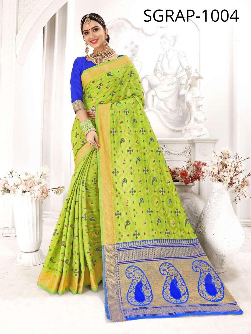 New Arrival by Sangam Catalog Name :- *Rajkoti Patola* Fabric :- Patola Silk Saree *Price :- 1100 + 5 % gst?* Set & loose & Singel *Note :- Single & Full Both are available* Single extra 100 So you take order in both way Delivery from today Hurry up |