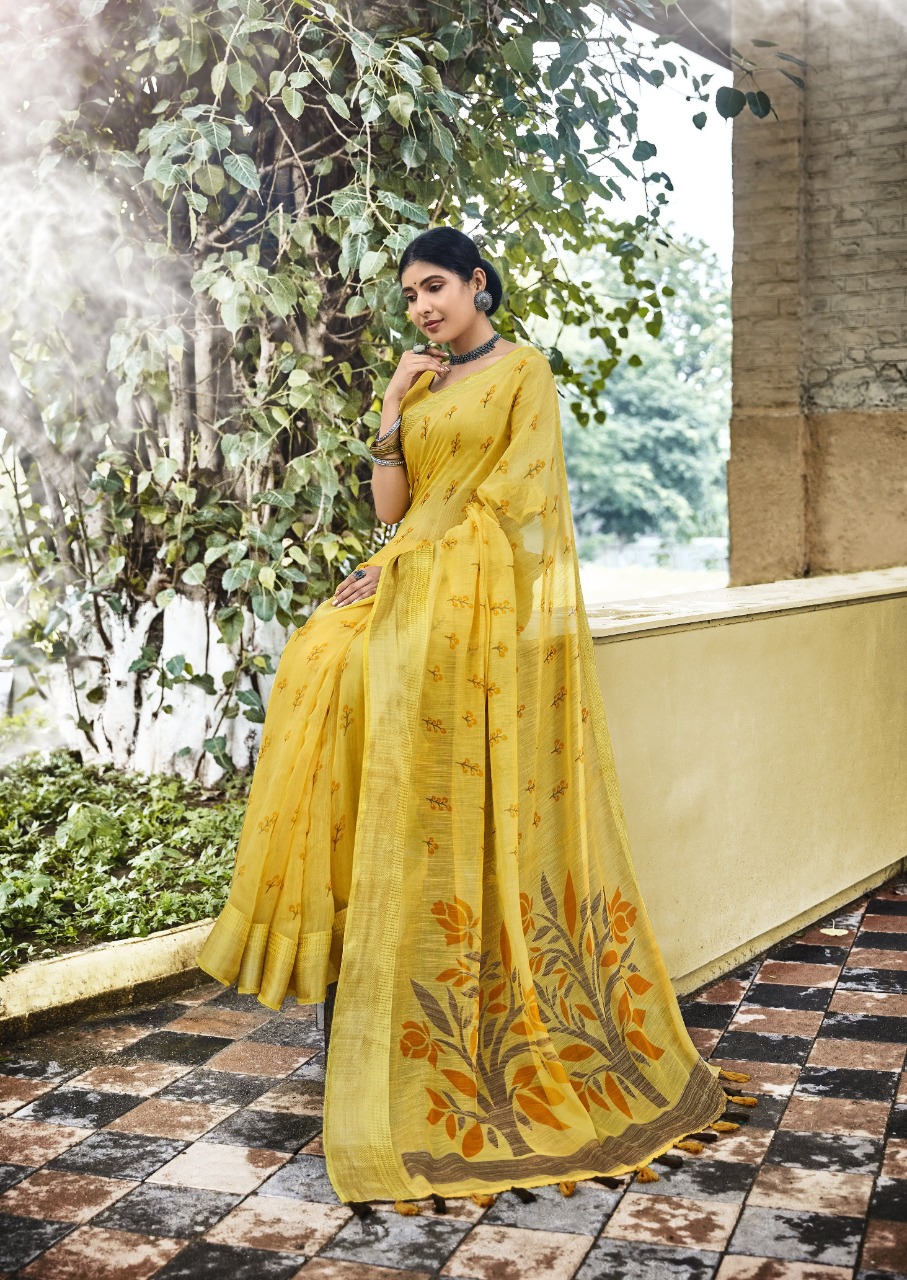 *Triveni Sarees* Name :- *RAJKUMARI VOL-2* Fabric :- *Cotton Linen Print* Rate :- *per pcs 701/-* Set to set |