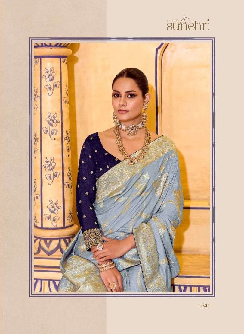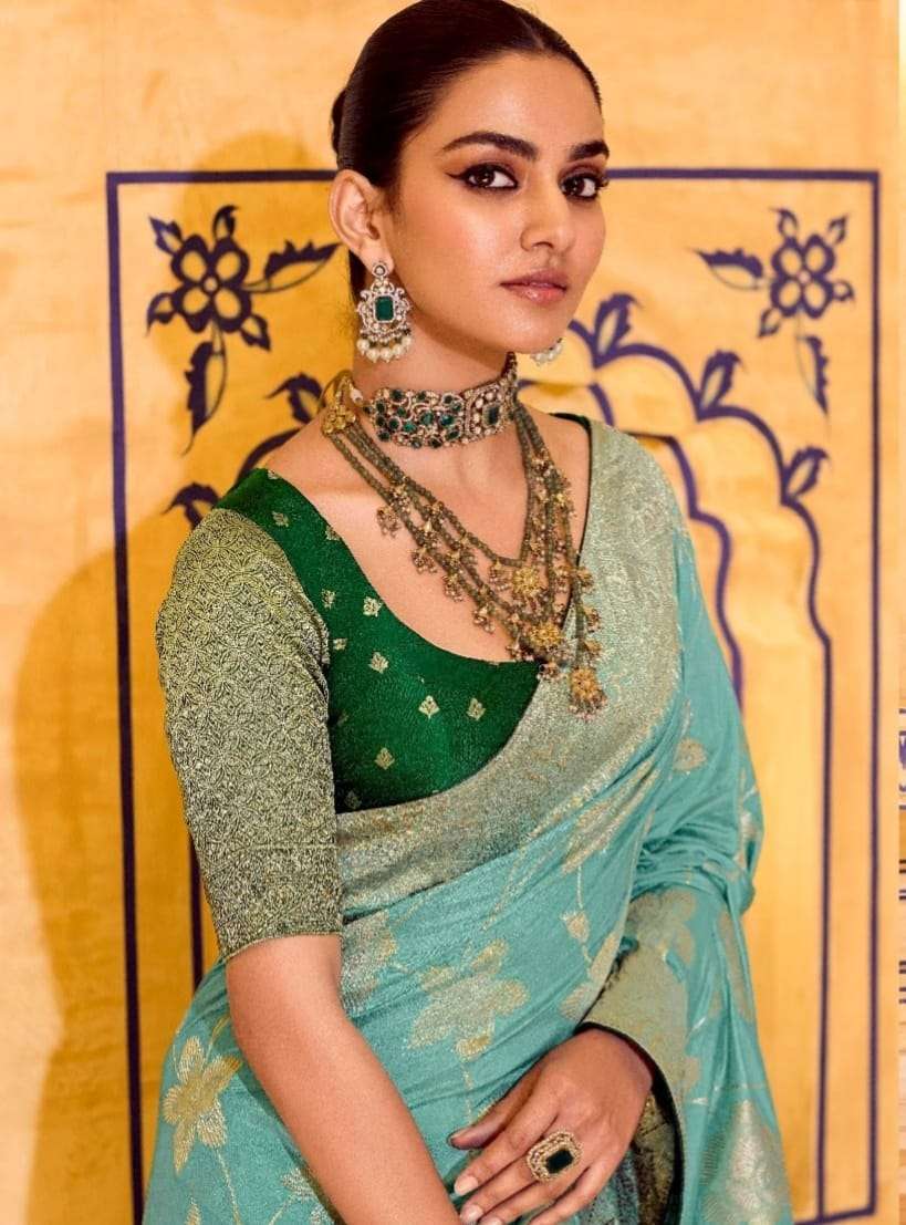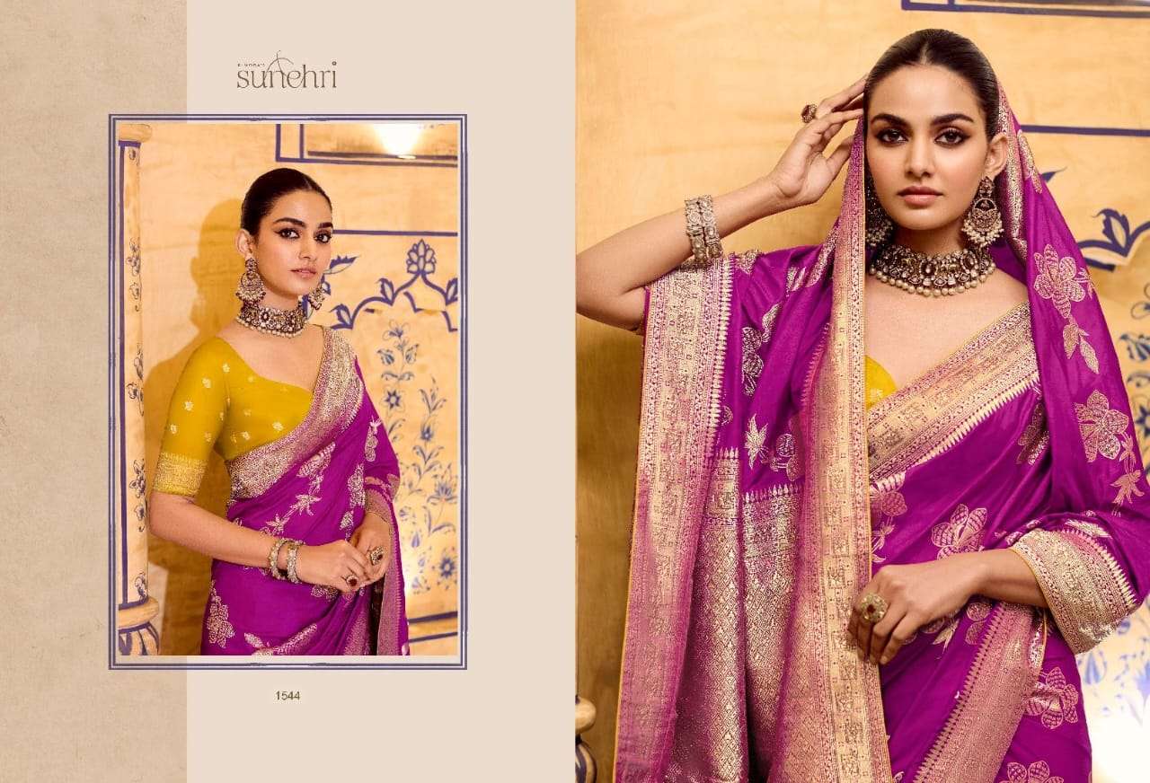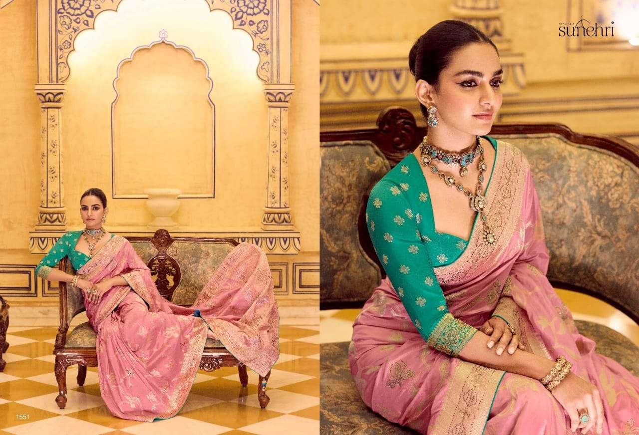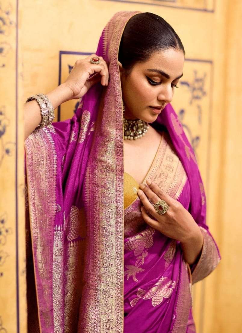 *➡️ Fabric Details :-* *~Pure Banarasi Crap Silk* *~With Worked Border & Body* *~Designer Worked Blouse* *All in one Catalogue💯*