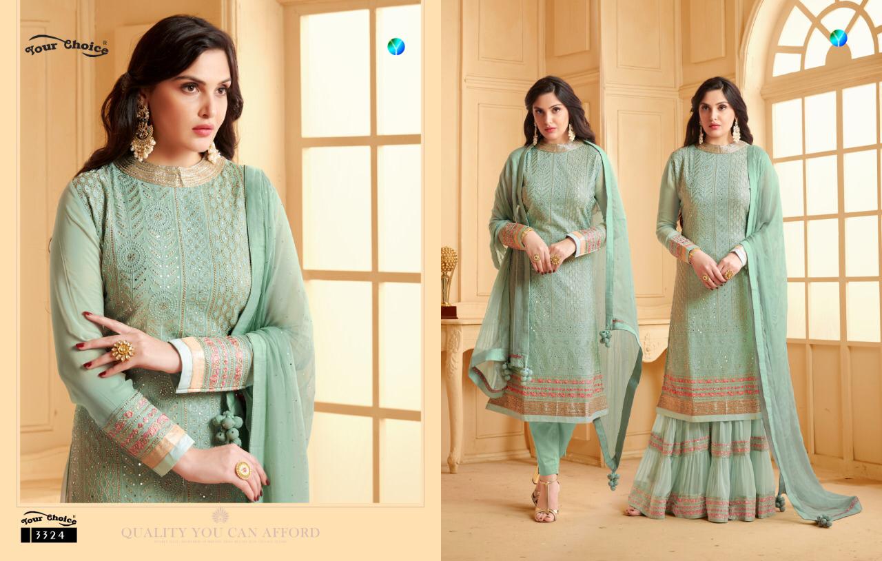 Buy Online Rajwadi By Your Choice Series 3322 To 3326 Designer Party Wear Suits Wholesale Supplier Gujarat 5 Pcs of Full Catalogue at Wholesale Price. Looking for Rajwadi By Your Choice Series 3322 To 3326 Designer Party Wear Suits Wholesale Supplier Gujarat Full Catalouge at Best Price? Buy Now Rajwadi By Your Choice Series 3322 To 3326 Designer Party Wear Suits Wholesale Supplier Gujarat at Wholesale Rate of Rs 10475 with Total 5 Pcs from authroized dealer and supplier of YOUR CHOICE Brand. Cost of Each piece is just only Rs 2095 which is very low and affordable price to resale the product in your retail store ,This is Surat based Wholesale Supplier & Dealer of YOUR CHOICE Brand. Click on Brand name to Know more about YOUR CHOICE Brand's products.Call or Whatsapp on 9898838984 for booking or enquiry