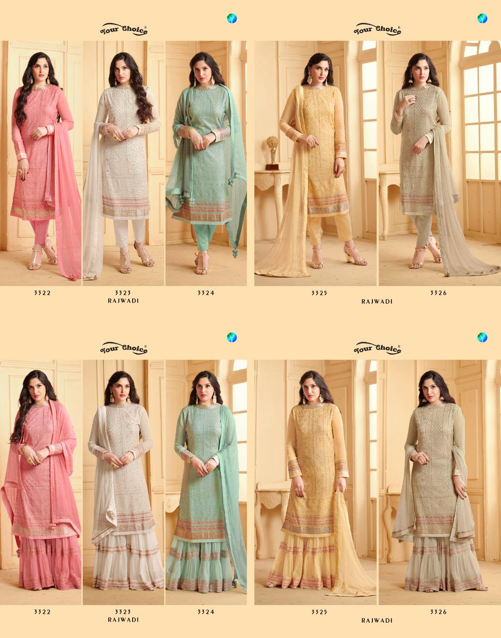 Rajwadi By Your Choice Series 3322 To 3326 Designer Party Wear Suits Wholesale Supplier Gujarat