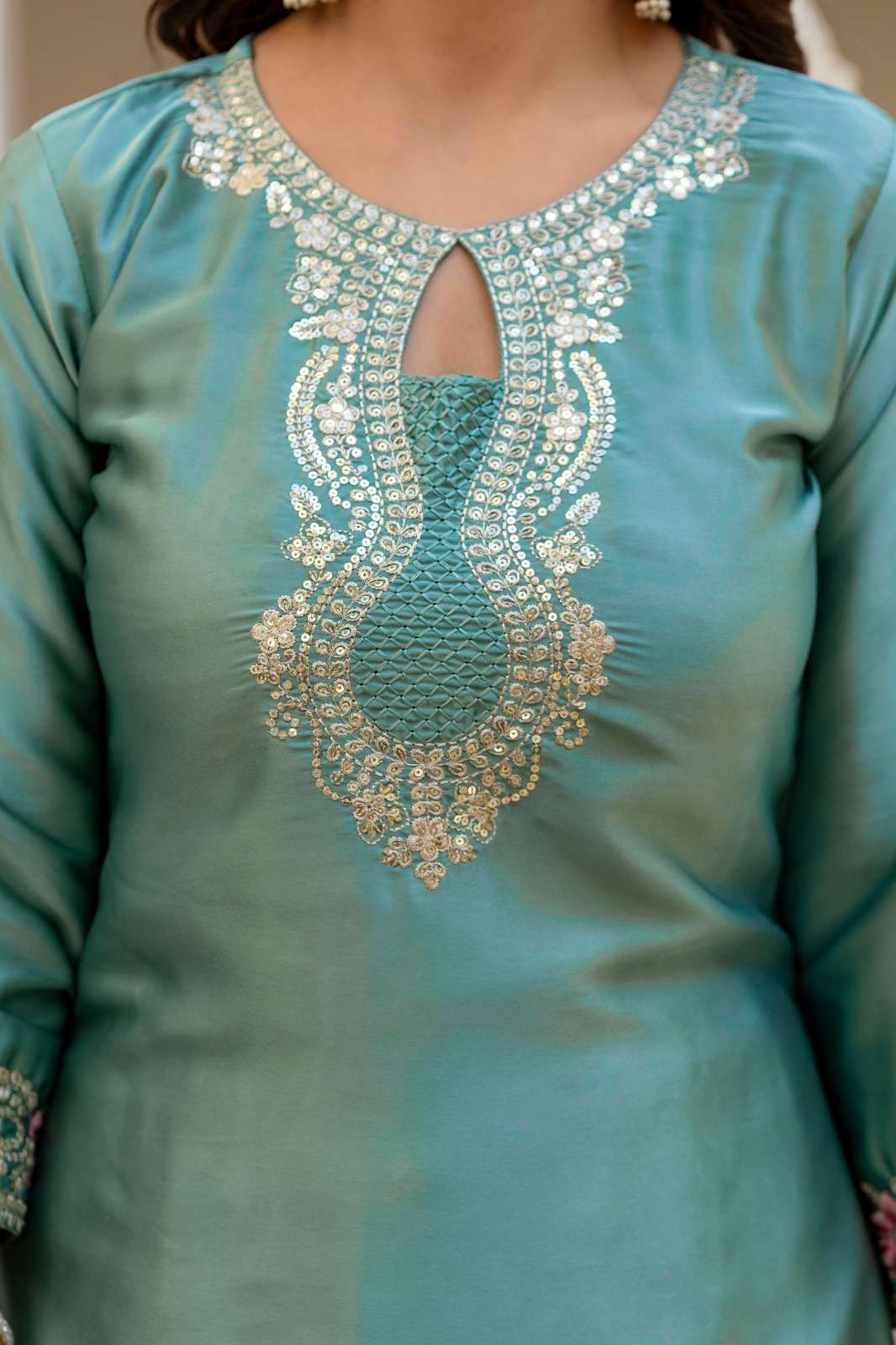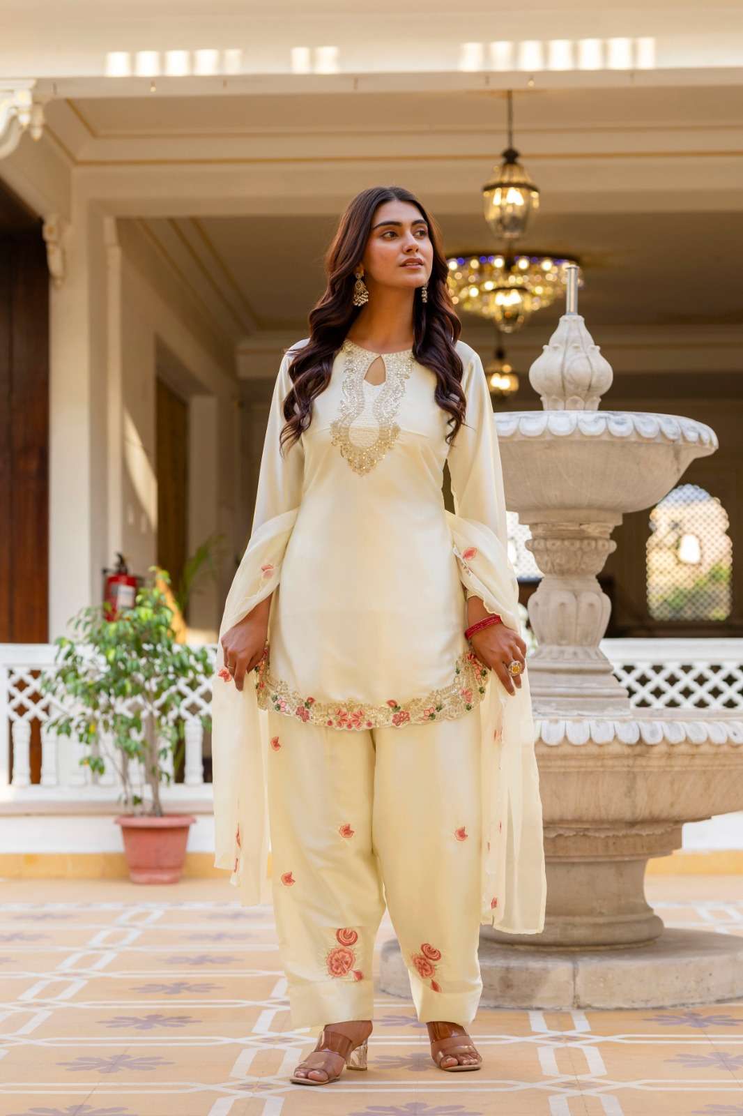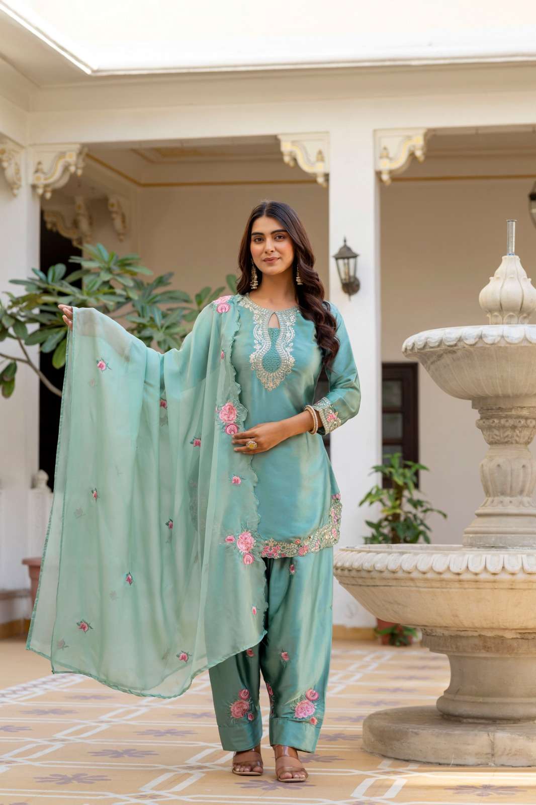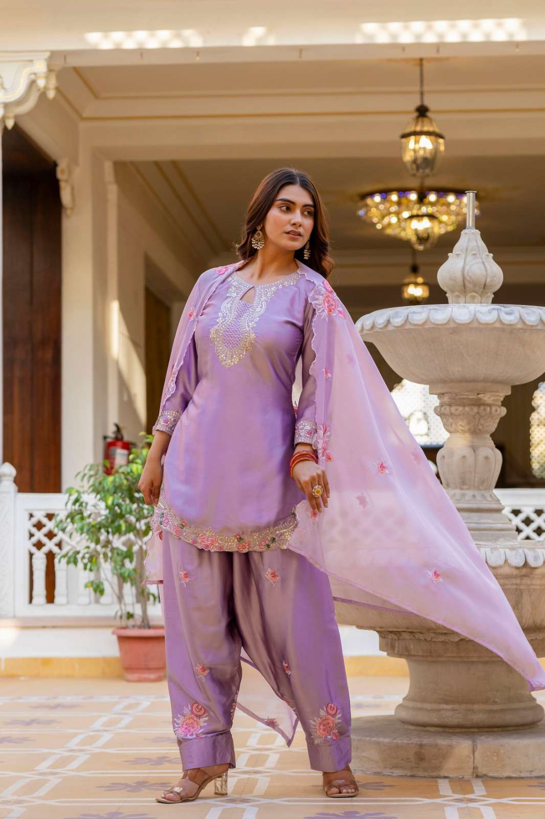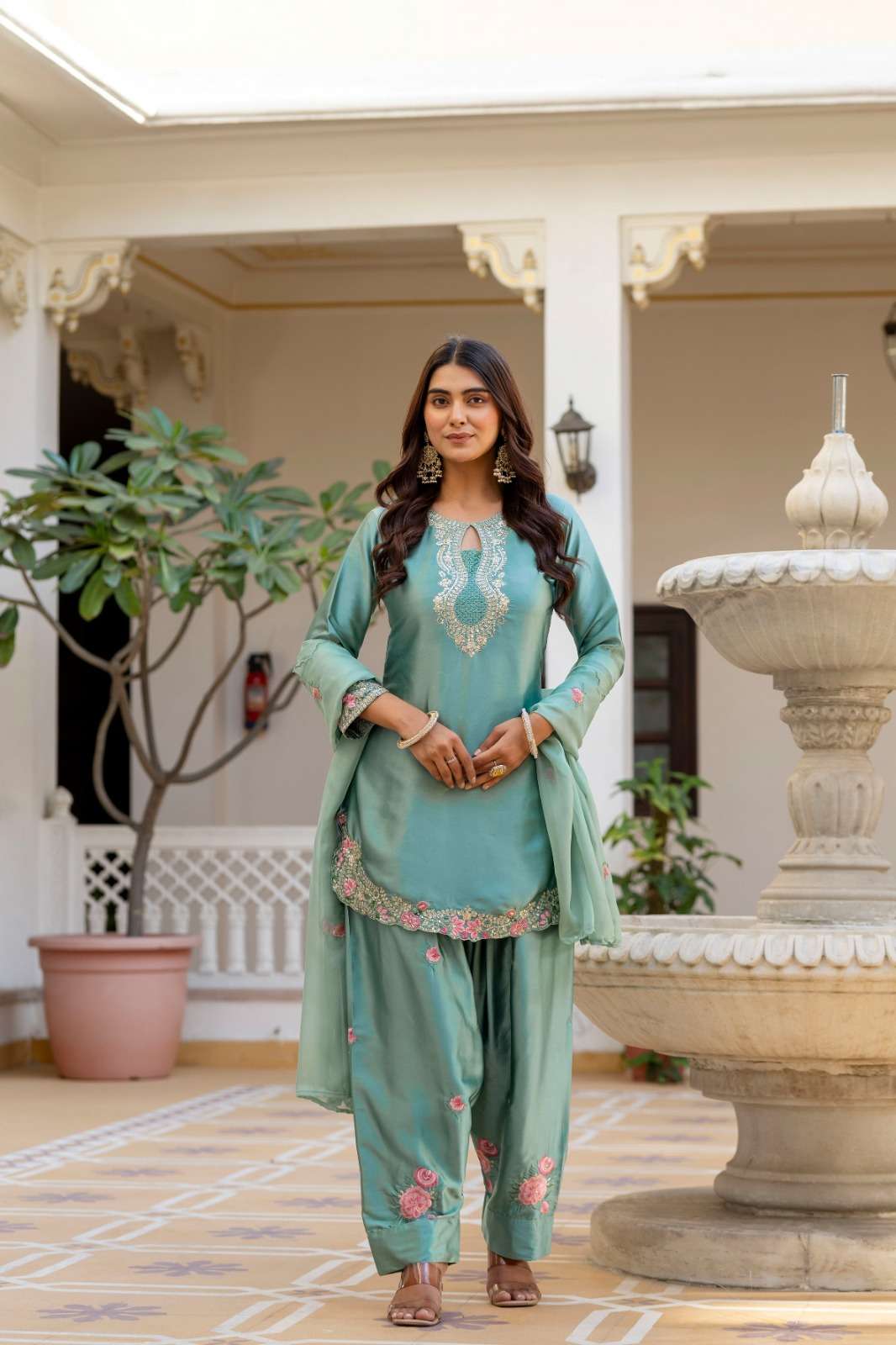 Product Details : ---------------------------------------- @ Kurti - Stitched @ @ Kurti Material: Japan satin @ Kurti Length: 31 Inch @ Work: Embroidery @ Kurti Bust Size : Max Up To 36" @ Sleeve Length : Three-Quarter Sleeves @ Kurti inner- Full inner ---------------------------------------- @ Bottom - Stitched @ @ Bottom Fabric : Japan satin @ Work: Embroidery @ Bottom Waist Size : Max up to 40" @ Bottom Length : 39" to 40" @Bottom Type : Patiala pant @ Bottom inner- Full inner ---------------------------------------- @ Dupatta -Stitched @ @ Dupatta Fabric : Teby @ Dupatta Length : 2.20 m -----------------------------------------