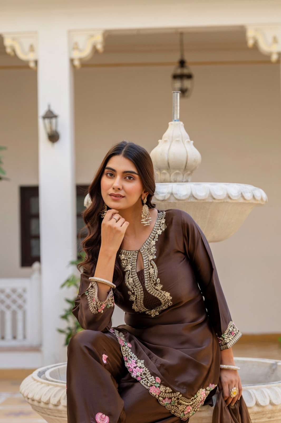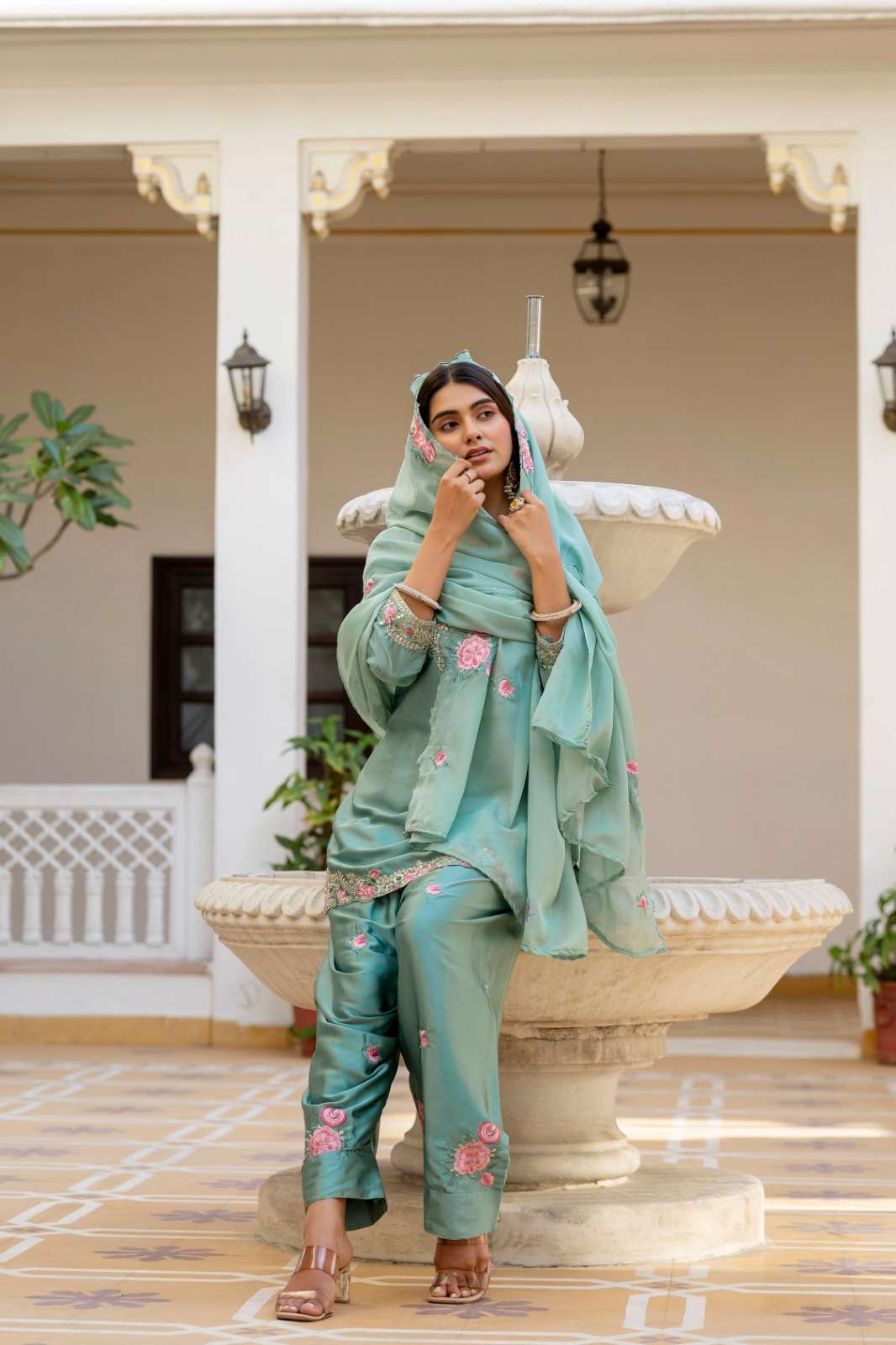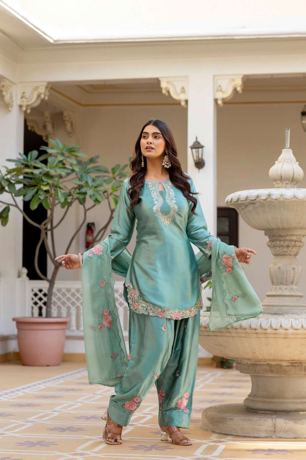 Classic Traditional Patiala Outfit with Rich Embroidery, Floral Motifs, Flowing Dupatta and Plain Patiala Pant for Special Occasions
